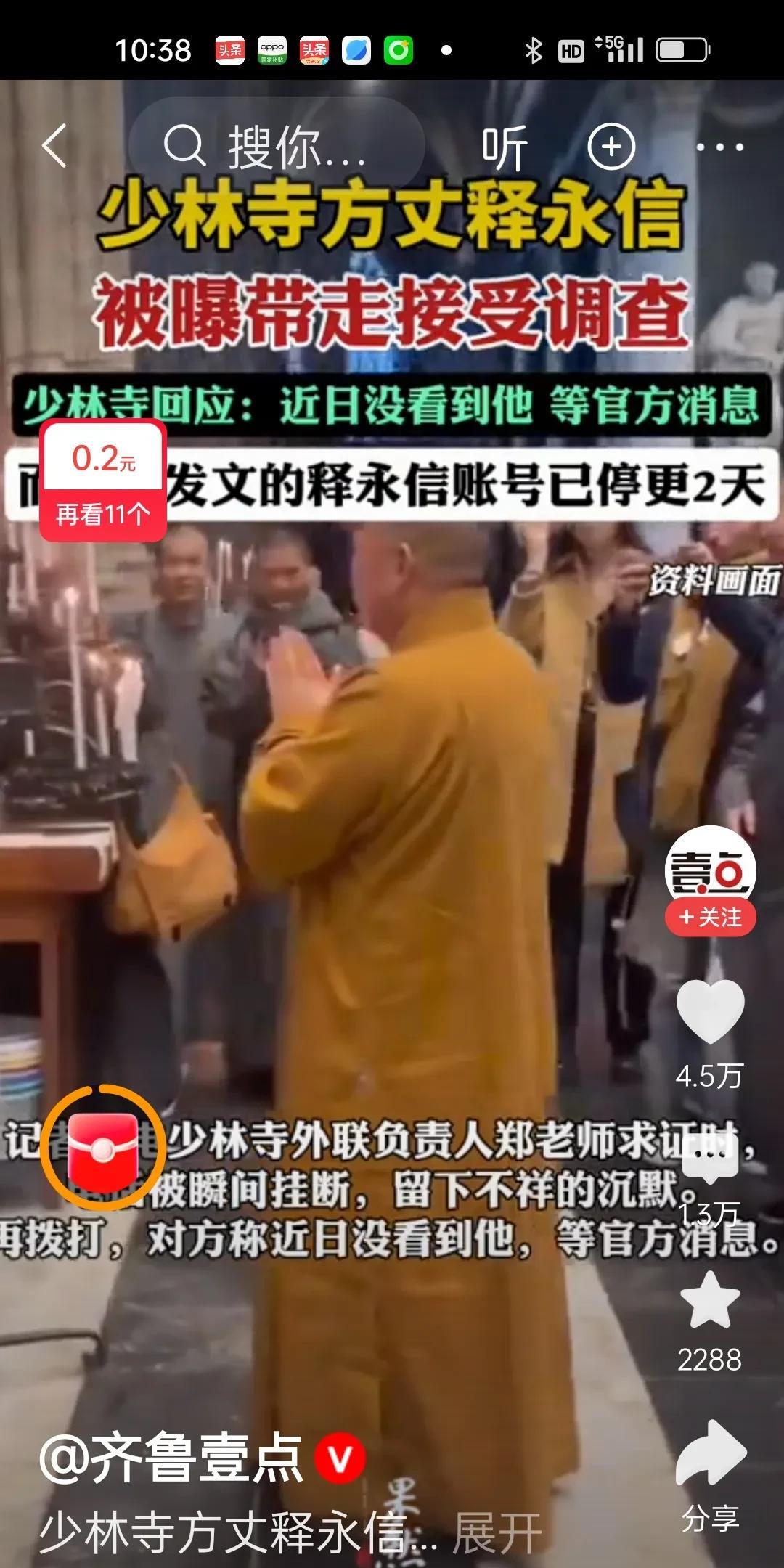 网传少林寺方丈释永信,被带走调查,不知道是被哪里带走,做什么调查。 关于佛说三个