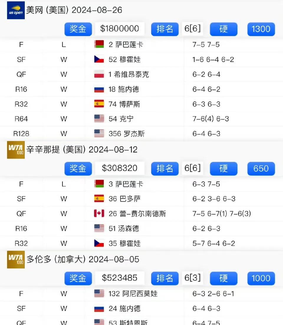 你发现了吗?佩古拉状态开始下滑了! 巴特洪堡500赛夺冠后,温网爆冷一轮游。接下来华盛顿500赛她作为头号种子,也是首轮出局。 而北美赛季,大富有2950巨分要保,占总积分近一半。 其中:多伦多1000分(去年冠军)、辛辛那提650分(去年亚军)、美网1300分(去年亚军)。 大家觉得,大富能保多少分呢?