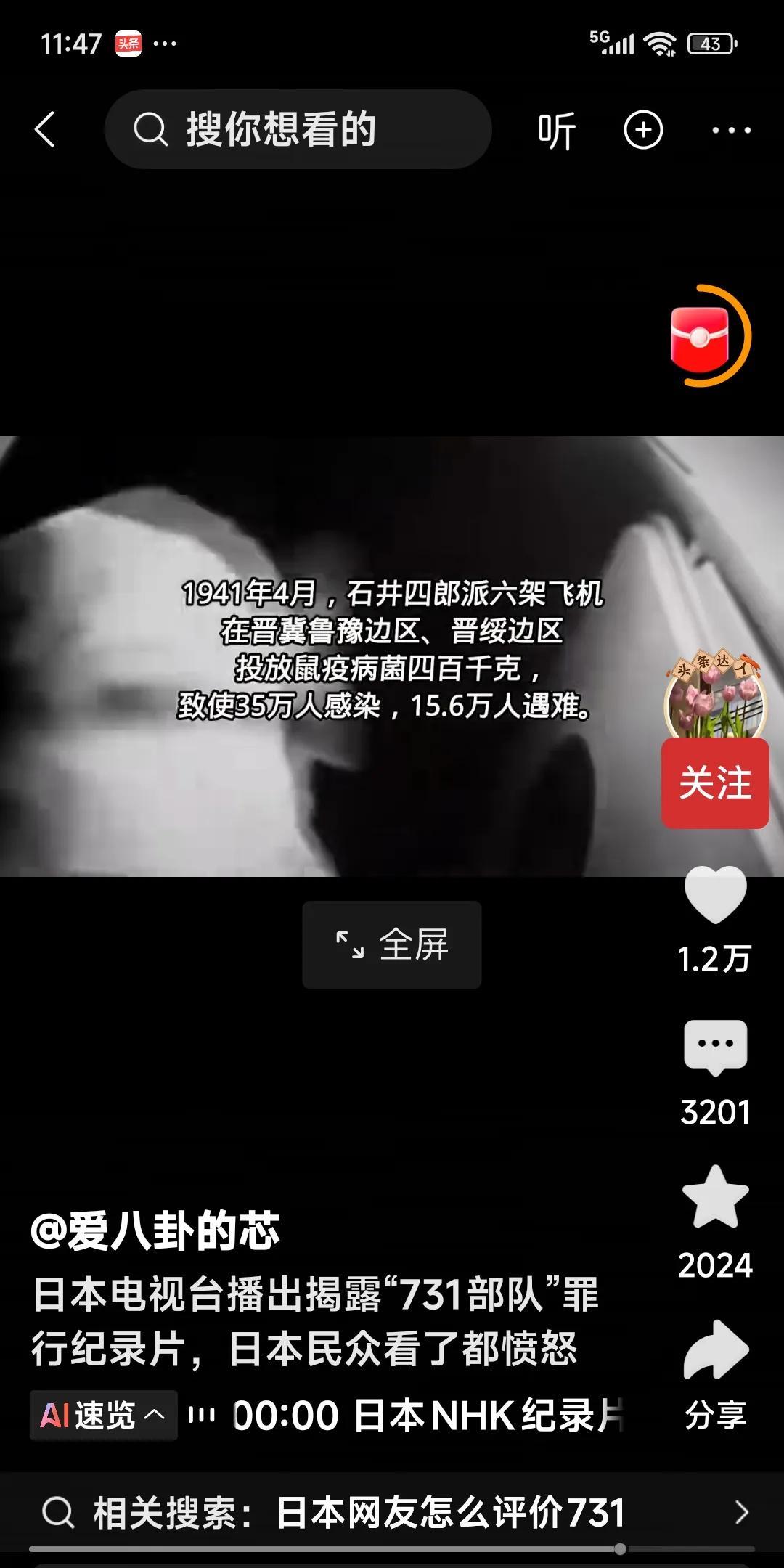 日本电视台播出揭露731部队罪行纪录片,日本民众看了都愤怒,把历史真相展示给日本国民,非常有效果。网友说:血淋淋的历史教训,我们怎能忘记,我们有什么权利替先辈们原谅他们,向被日本人迫害的先人们默哀,向抗日战争的烈士们默哀,牢记落后就要挨打,我辈当自强。有的人说:日本都播啦,为什么我们国家还没有确定电影731的上映时间?有的人说:731一定的上映,让后人汲取教训,懂得当年为什么中国人民一定要抗击倭寇,由此和牺牲和被杀害3500多万军民,勿忘国耻,珍惜和平,大家说是这样的吗?