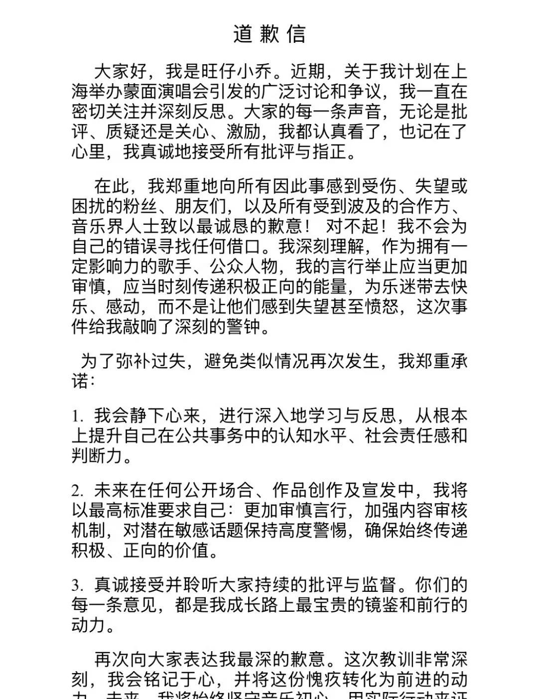 千万粉丝网红旺仔小乔真的是有能耐啊,随便发两句话就把张碧晨和汪苏泷给闹的开撕了。怪不得说一些三观不正的网红和明星要封杀呢,不然影响真的大。 一个网红把顶流的歌手给搞崩了,想想都觉得好搞笑啊。 最近旺仔小乔发文道歉了:向所有受到波及的合作方、音乐界人士致歉;说以后再发文之前一定要三思。 很多网友说:她再不道歉就要被起诉了,所以才不得不来道歉的,其实没有真的想道歉。 也有网友说:再不道歉,估计她自己就快凉了,毕竟得罪的都是大佬啊,也不掂量一下自己是谁。 我还是第一次听说这个人,原来她这么有影响力啊,到底是哪些人喜欢这样的人呢?#歌手旺仔小乔#