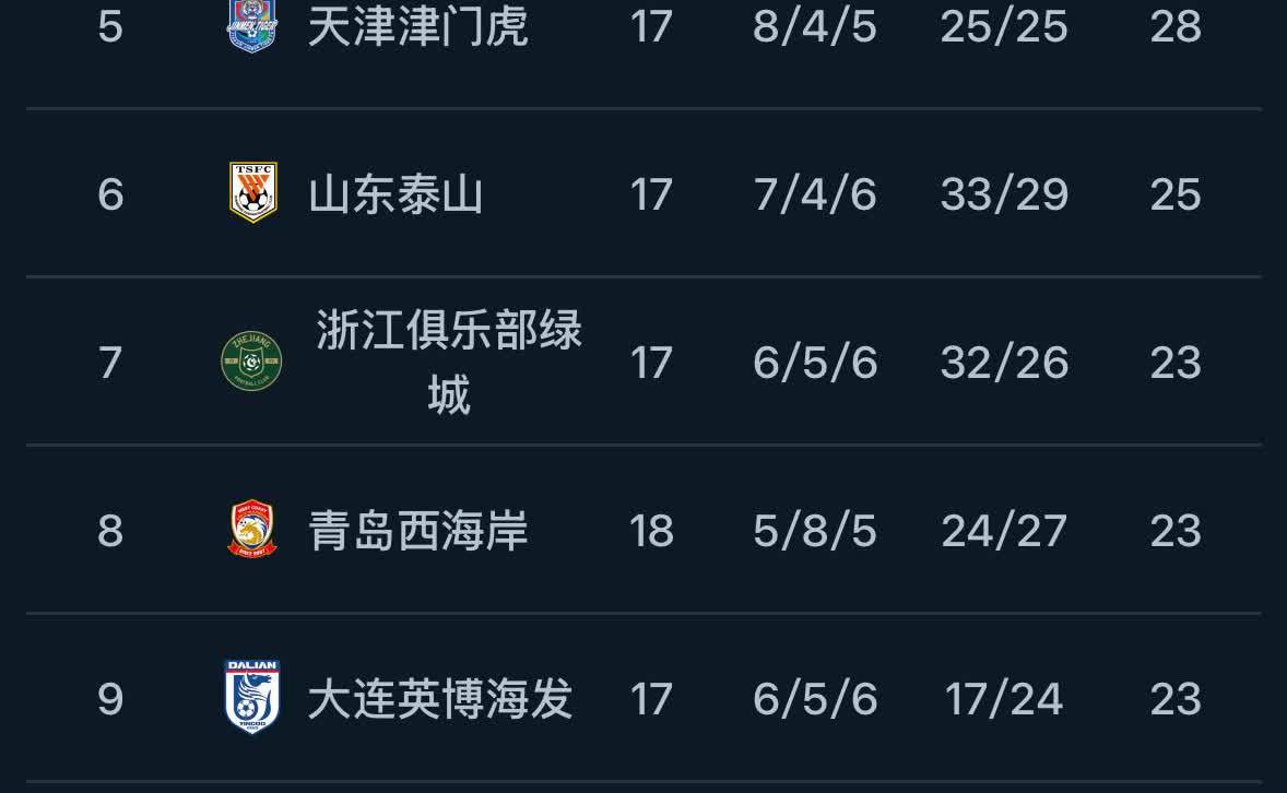 泰山队积分又被后边的一个球队追平 看现在的泰山队积分和排名,就是感觉每打完一轮