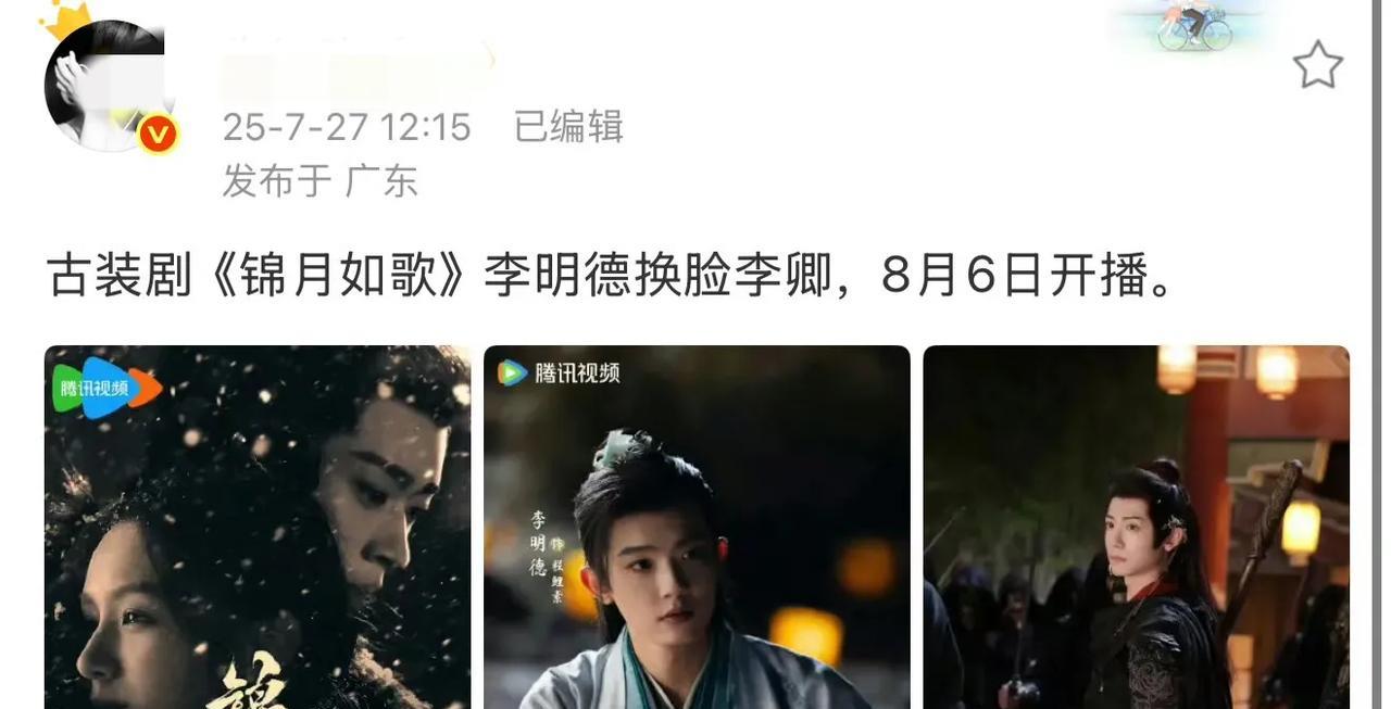哇!又一部剧要换脸了!! 网传《锦月如歌》里面的李明德要换脸成演员李卿,就是刚刚在《书卷一梦》里面演阿虎的那个演员。 瓜主说脸已经换完了,8.6就开播! 这真的太迅速了! 观众就算再期待,热情也被一次次延期消磨了[泣不成声]