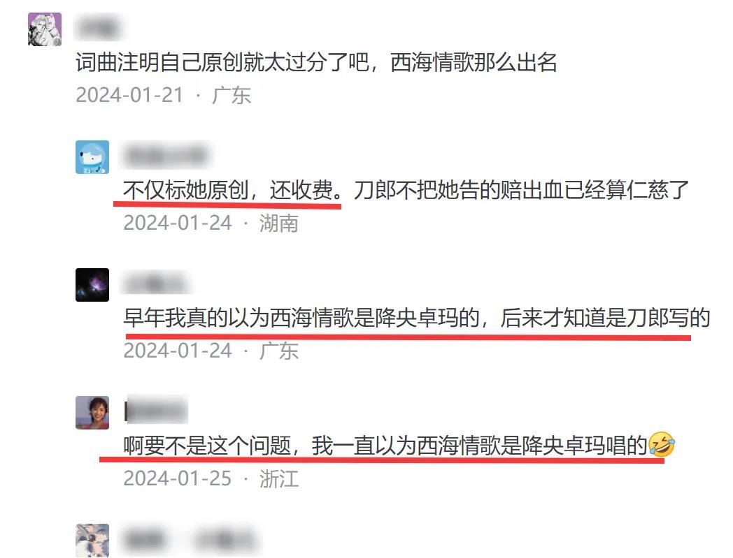 发现没? 张碧晨真的有点危险了。 再作下去,她就是下一个被刀郎用一首歌狠狠打脸的降央卓玛。 2006年,刀郎听闻可可西里实习的一对大学生相爱相守,男孩却因公殉职,成当地首位牺牲的志愿者。 他深受感动,创作了歌曲《西海情歌》。 2009年出道的降央卓玛,选择翻唱这首歌,一炮走红。 因私交不错,刀郎从未收版权费,结果降央卓玛渐渐把这首歌当成自己的。 她把翻唱版本发行到线上音乐软件收费展示,连作词作曲都标注成为降央卓玛。 刀郎数次交涉无果,直接诉上法庭,降央卓玛毫不意外地败诉赔钱,且再也不能翻唱《西海情歌》。 所以,汪苏泷完全可以告张碧晨的。 凡事留一线,将来好相见,汪苏泷真是体面人。 你的善良,要有点锋芒! 张碧晨要是再作,汪苏泷应该就会重拳出击了! 因为,你永远叫不醒一个装睡的人,只能痛醒!