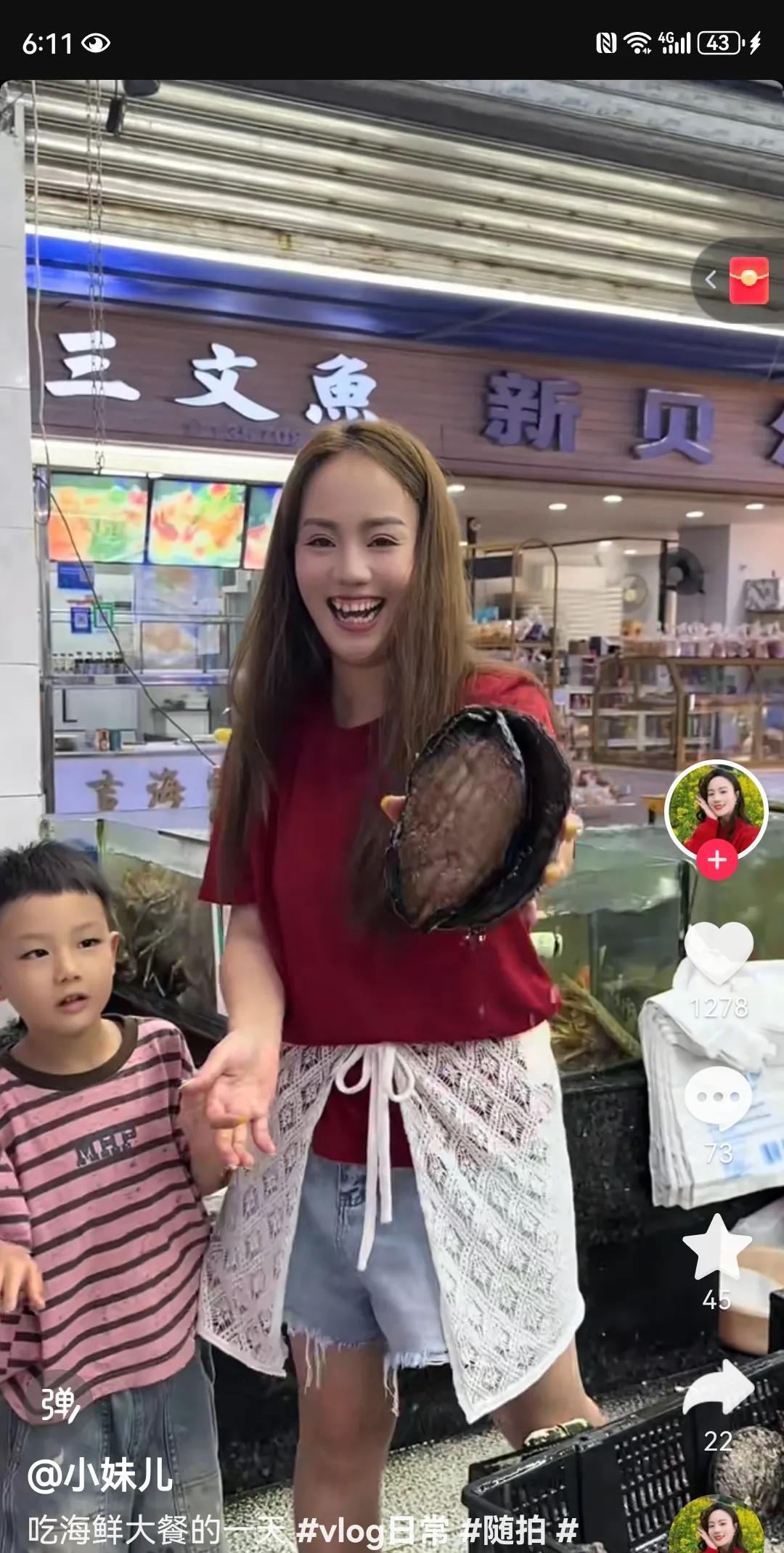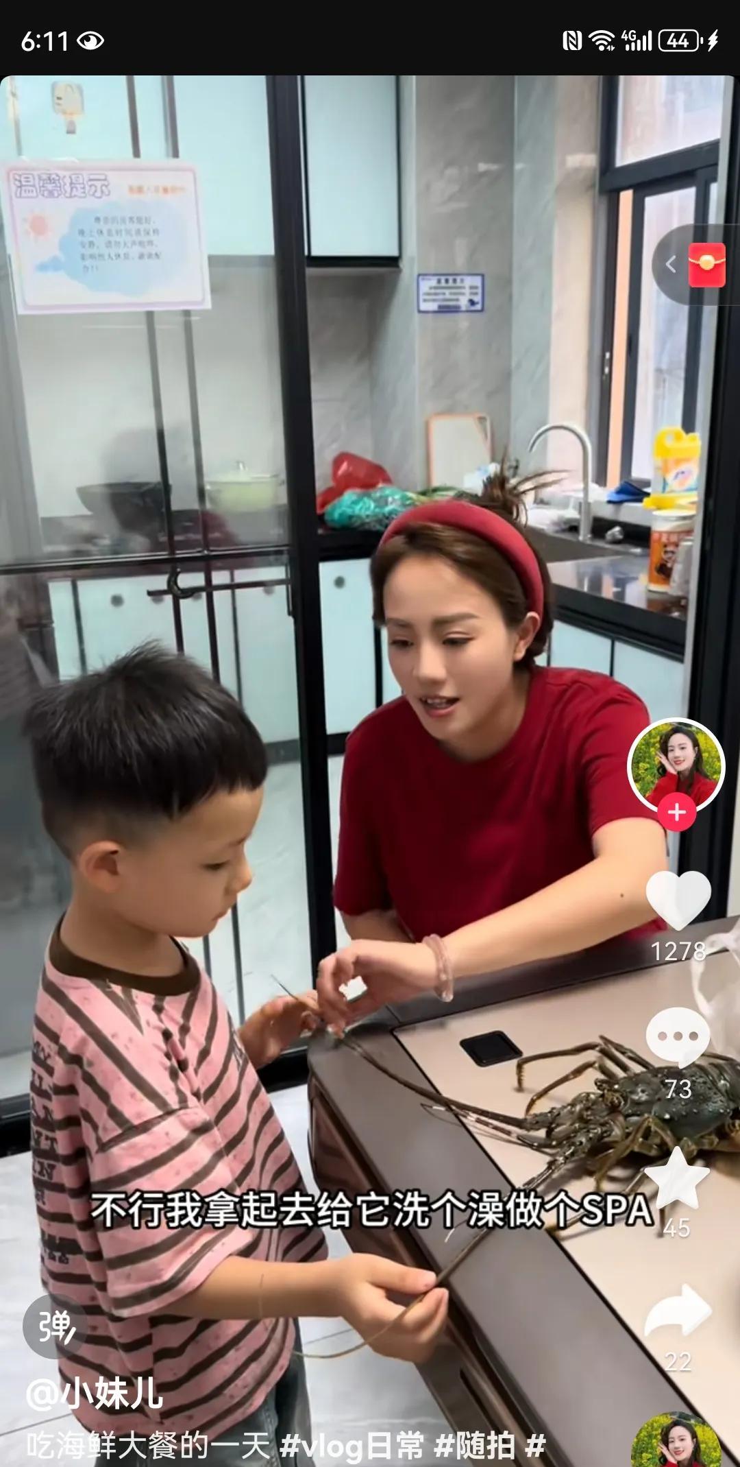 小妹儿这日子过得爽歪歪。 小妹儿带着俩儿子,家里俩保姆,摄影师~~,一群人去广州旅游。貌似租住的民宿,去海鲜市场买了一大堆海鲜,大龙虾,螃蟹,生蚝~~~,亲自下厨整了个海鲜大餐。这跟着小妹儿混,不是三天饿九顿,而是天天吃香喝辣,划算。 有点儿好奇:现在的小妹儿没咋带专场,平时就隔天更新个视频,偶尔晚上直播卖卖货。她要养这么一堆人,要发工资,还要管他们的吃喝拉撒,米从哪里来?