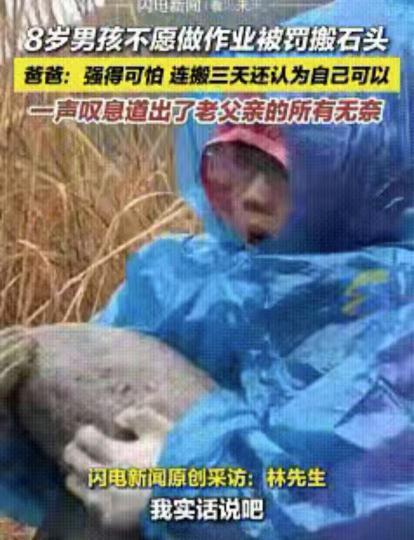 “强得可怕。”3月浙江杭州,一8岁男孩因不愿意做作业,被父亲带到乡下搬石头,从早上8点搬到下午4点,本想治治懒劲,结果人家连搬3天依旧干劲十足,最后老爸自己先懵了:这到底是谁教育谁? 杭州林爸爸的“吃苦教育”翻车现场,究竟是怎么回事? 2025年3月,杭州一位林爸爸的“吃苦教育”计划彻底火了,不过火的不是他预期的效果,而是完全出乎意料的反转。 他那8岁的儿子因为死活不肯写作业,被林爸爸带到乡下搬石头,从早上8点一直搬到下午4点。林爸爸本想用这种“吃苦”的方式让孩子明白,作业再难也比干活轻松, 结果没想到,这孩子不仅连干了三天,越搬越起劲,连下雨天都不肯停歇。林爸爸无奈地感叹:“这到底是谁在教育谁?强得可怕!” 这事儿一传开,立马在网上炸开了锅。网友们议论纷纷,观点五花八门。有人佩服这孩子的毅力,觉得他将来搞工程肯定是一把好手:“这孩子有毅力,有头脑,搞工程肯定行!” 也有人从另一个角度反思,认为问题的根源在于作业设计本身:“现在的作业太枯燥了,如果学习能像搬石头那样有成就感,孩子怎么会抗拒呢?” 还有人直接质疑这种惩戒式教育的有效性:“孩子根本理解不了‘搬石头’和‘写作业’之间的抽象联系,反而可能更讨厌写作业。” 其实,林爸爸的困境反映了现代家长普遍存在的一种焦虑:管得太严怕孩子逆反,管得太松又担心孩子将来没出息。 这种两难境地让很多家长在教育孩子时常常感到无所适从。那么,教育的真正解法在哪里呢? 在中国古代,孔子就主张“因材施教”。他根据每个学生的特点,采用不同的教育方法。比如,颜回聪明好学,孔子就以道德文章教之;子路性格刚烈,孔子则以礼乐教之。 这种个性化的教育方式,使得每个学生都能在自己的领域有所成就。 中国的“虎妈”蔡美儿。她以严厉的教育方式著称,但她的两个女儿最终都在各自的领域取得了成功。 然而,蔡美儿后来也反思了自己的教育方式,认为每个孩子都是独特的,教育方式需要根据孩子的特点进行调整。 回到林爸爸的故事,男孩将搬石头视为户外探险,默默计算搬运效率、优化路线,把苦差事玩成了项目管理游戏。 事后,他坦言:“搬石头能立刻看到成果,写作业却像无底洞。” 这句话直击教育的痛点:枯燥的重复与成就感的缺失。 其实,教育的本质在于尊重每个孩子的个性和兴趣,帮助他们找到属于自己的赛道。 正如孔子所说:“知之者不如好之者,好之者不如乐之者。”只有让孩子在学习中找到乐趣,才能真正激发他们的学习动力。 家长和老师应该关注孩子的兴趣和特长,提供个性化的教育方案。每个孩子都是独特的,教育方式需要根据孩子的特点进行调整。 要培养孩子的学习兴趣,通过游戏、实验、实地考察等方式,让学习变得更加有趣。兴趣是最好的老师,只有让孩子对学习产生兴趣,才能真正激发他们的潜能。 林爸爸的“吃苦教育”计划虽然翻车,但给我们提供了一个反思教育方式的机会。教育的终极目标不是制造统一的“优秀产品”,而是帮助每个孩子发现自己的价值。 正如一位网友所说:“每个孩子都是一颗独特的种子,只要给予合适的土壤和阳光,他们都能开出属于自己的花朵。” 希望每一位家长和老师都能从中得到启示,找到适合孩子的教育方式,让每个孩子都能在自己的轨道上发光发热。