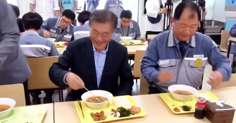 韩国总统考察企业的便饭那么简单吗? 李在明和文在寅吃的是什么,好像中国的过桥米线