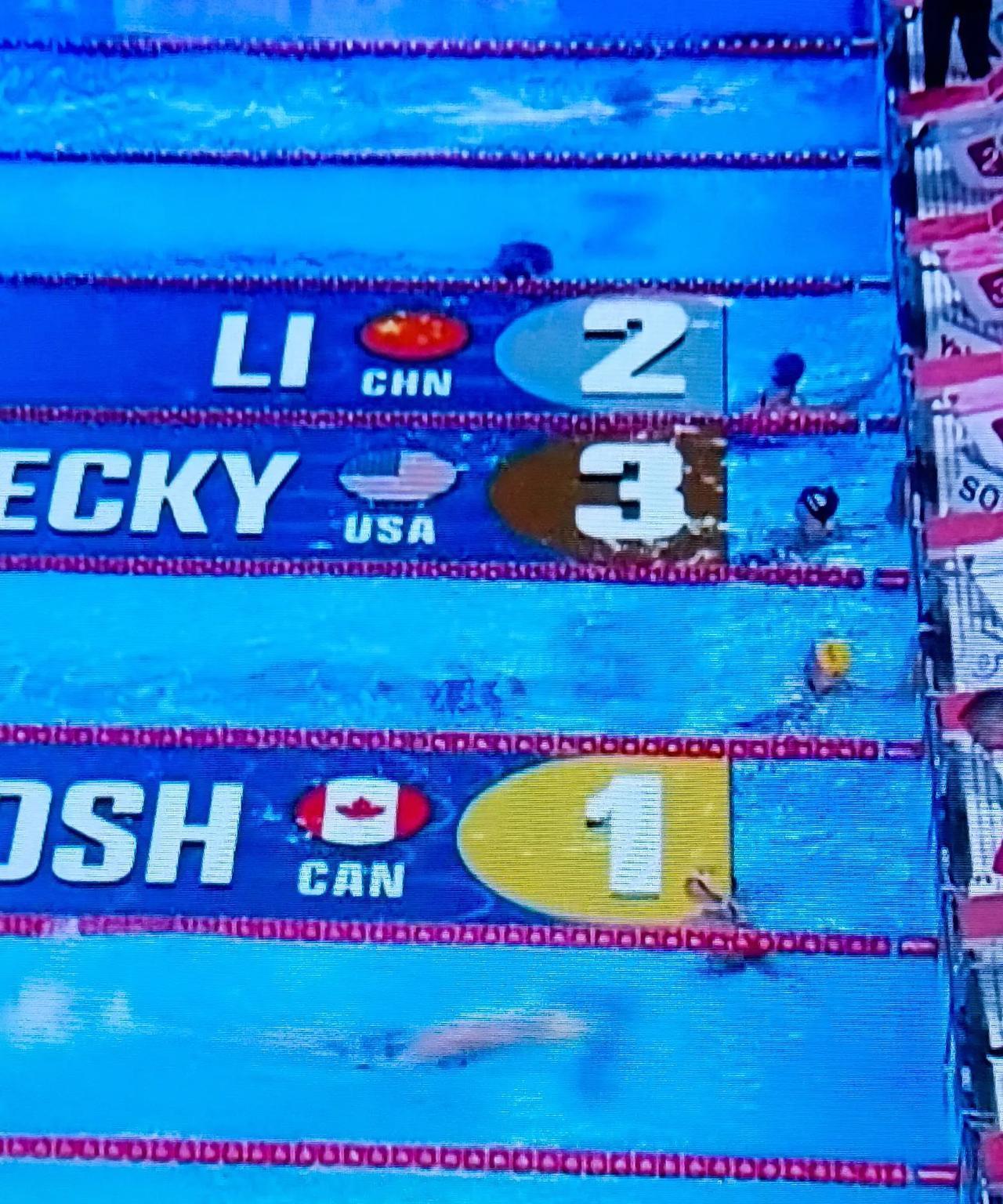 巨大惊喜!李冰洁超越莱德基,获400米自由泳银牌。 在刚刚结束的女子400米自由泳决赛中,中国名将李冰洁以3.58.21的成绩获得银牌。这块银牌实现了两大超越,一是超越了亚洲记录,二是最后15米超越了美国名将莱德基。 加拿大运动员获得冠军,莱德基获得季军。
