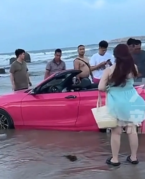 虚荣一时,后悔十年!游客租个50万的宝马,带着漂亮小妹妹,勇闯沙滩,结果悲催了!