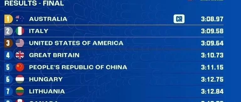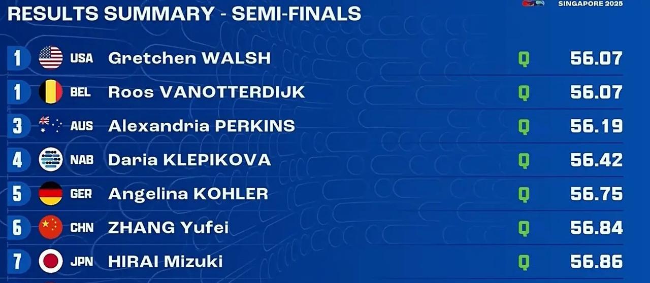 新加坡游泳世锦赛首日决赛:李冰洁带来最大惊喜! 1、女子400米自由泳决赛:最大惊喜 李冰洁后来居上、发挥出色,以3分58秒21大幅刷新自己保持的3分59秒99的亚洲纪录,战胜莱德基等一种高手、勇夺银牌。杨佩琪决赛发挥一般,4分06秒47获得第7名,游的比预赛要慢一些。 加拿大名将麦金托什3分56秒26夺冠,莱德基3分58秒49铜牌。 2、男子400米自由泳决赛: 小将张展硕发挥不错,以3分44秒82再刷个人最佳,获得第五名。世界纪录保持者德国马腾斯以3分42秒35夺冠。 3、男子4x100自接力决赛: 澳大利亚队以3:08.97打破赛会记录获得冠军。 4、女子4x100米自接力决赛: 很可惜中国队最后一棒翻盘未果,由程玉洁、柳雅欣、余依婷、吴卿风组成的中国队游出3:34.17 ,获得第四。分段成绩:程玉洁 53.42秒;柳雅欣 53.93秒;余依婷 53.88秒;吴卿风 52.94秒。第三和第四棒有些慢了。当然客观事实是:获得第三名的荷兰队第四棒游出了惊人的全场最快:51秒64。 澳大利亚队以3:30.60获得金牌。 5、男子100米蛙泳半决赛: 覃海洋状态复苏明显,以58秒24位列半决赛第一晋级决赛。董志豪以0.04秒之差获得第九,遗憾出局。 6、女子200米混合泳半决赛: 12岁的小孩姐于子迪发挥不错,游出2:10:22刷新个人最佳,以总成绩排名第七,进入决赛。另外一位中国选手余依婷游出2:10:63,以0.14秒之差无缘决赛。 7、女子100米蝶泳半决赛: 选手张雨霏游出56秒84排名第六,余依婷57秒11排名第八,双双晋级决赛。 美国选手格雷琴-沃尔什和比利时选手鲁斯-瓦诺特迪克以56秒07并列第一。 #爆料#