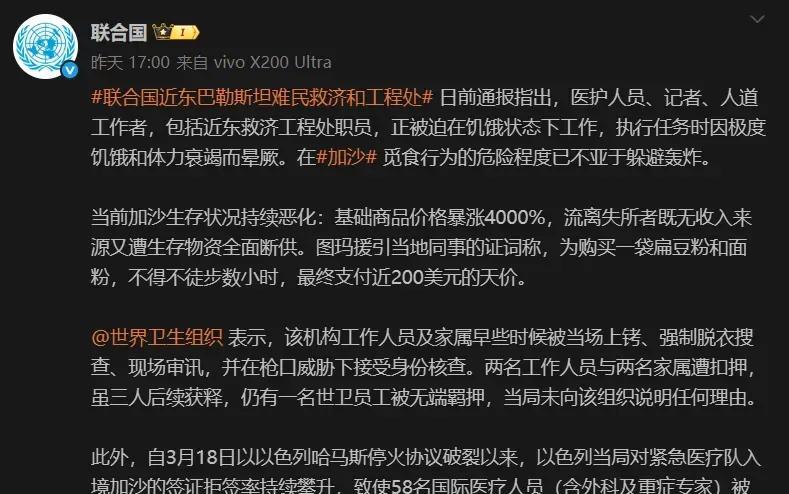 以色列法西斯真不要脸,自己不让联合国的车队进入,还揣着明白装糊涂叫嚣联合国为什么不进入。 加沙地带的现状令人痛心疾首。这片土地如今已沦为人间炼狱,超过 240 万巴勒斯坦民众被困其中,承受着难以想象的苦难。以色列凭借先进的军事装备,对加沙地带展开了高强度的军事行动。 自今年 3 月起,以色列对加沙实施全面封锁,导致当地本就脆弱的人道状况急剧恶化。据联合国数据,加沙约有 125 万人生活在灾难性的饥饿状况下,96% 的人口面临严重的粮食不安全问题。 以色列的行为不仅体现在军事打击上,还包括对人道主义物资的封锁。联合国多次呼吁开放援助通道,但以色列置若罔闻。 更令人愤慨的是,以色列单方面让美国支持的 “加沙人道主义基金会” 接管物资分发,导致加沙仅有四个分发点,取代了原先联合国运营的四百多个。 这种封锁和袭击直接导致加沙的医疗体系濒临崩溃。目前,加沙只有不到 40% 的医疗设施在运转,药品和燃料极度短缺。 联合国人道事务协调厅指出,加沙的孕产妇死亡率激增,新生儿早产与死亡率大幅上升,残障人士更是被完全边缘化。 孩子们在饥饿和恐惧中挣扎,每天都有儿童因饥饿或营养不良死亡,这是对人类文明底线的严重践踏。 国际社会对以色列的行为纷纷表示谴责。7 月 21 日,20 多个国家的外长发表联署声明,要求立即结束加沙战争,敦促以色列遵守国际人道主义法。 然而,以色列外交部却拒绝接受这一声明,称其 “脱离现实”。美国作为以色列的重要盟友,其立场同样令人失望。 特朗普政府曾提出 “清空加沙” 计划,试图将巴勒斯坦人迁移至其他国家,这一计划遭到国际社会的广泛反对。 美国还支持以色列主导的物资分发机制,导致更多平民伤亡,这无疑是对人道主义精神的背叛。 在这场危机中,美国和以色列的行为暴露了其所谓 “文明国家” 的虚伪。一个国家是否文明,对待弱势群体的态度是重要的试金石。 以色列对加沙民众的封锁和屠杀,美国对以色列的无条件支持,都表明他们在文明的测试中未能及格。这种将平民作为战争工具、无视人道主义法的行径,与法西斯无异。 当前,加沙民众的处境刻不容缓。国际社会必须采取切实行动,迫使以色列立即解除封锁,允许联合国等机构的人道主义物资顺利进入。 同时,应推动以色列与巴勒斯坦实现停火,通过和平谈判解决争端。我们不能再对加沙的苦难视而不见,每一个生命都值得被尊重,每一个呼声都应该被听见。 希望国际社会能团结起来,共同为加沙带来和平与希望,让这片土地上的人民早日摆脱苦难。你们如何看待这一现象?欢迎在评论区留言讨论。
