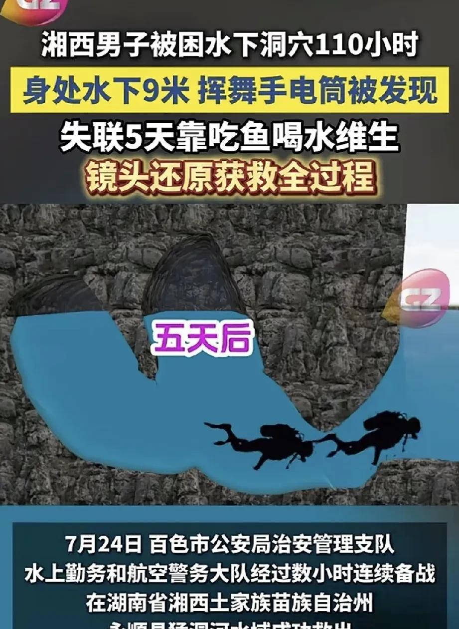 这可真够厉害的,一般人即便不饿死,也得被吓死。毕竟底下一直都是漆黑一片,没有声响,与世隔绝,看不到希望,也分不清白天黑夜,实在是恐怖!这绝对是个人才啊,心理素质超强。要是换作我,几个小时就得死了。今年有两位极限运动的牛人,一个是彭玉江玩滑翔伞时被云吸到8000多米高空,被迫打破吉尼斯世界纪录后安全着陆;另一个就是这位牛人在9米深的水下溶洞极限生存了5天,还平安无事被救出。