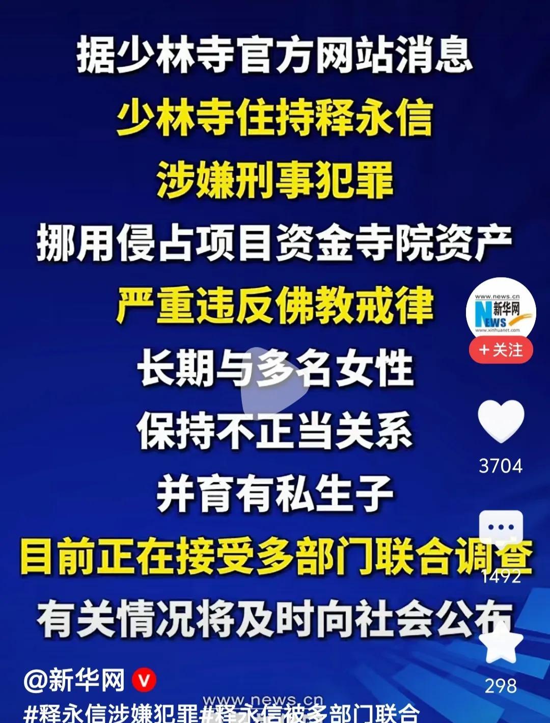 环球网报道的释永信违法及违规佛家戒规,大众该怎么看、怎么信? 每个人心中都有一丝