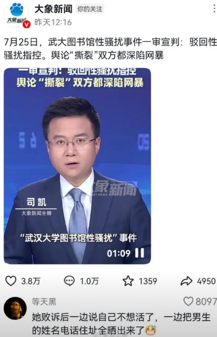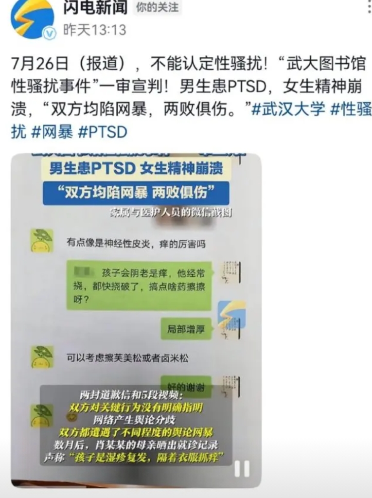 首先,法院判了,在大量证据的基础上,出了判决结果。不构成性骚扰,这等于说,是女的在搞事情,在以此种方式侵扰了男生正常的生活,打乱了男孩子正常的学习节奏————————怎么能不以法院的判决为准,说是“两败俱伤”。