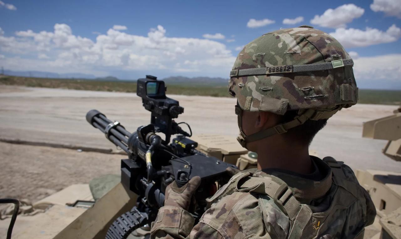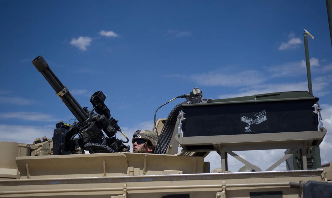 美国陆军第1装甲师第1装甲旅战斗队的坦克乘员,操作安装在M1A2 SEPv2主战坦克上的M134转管机枪。