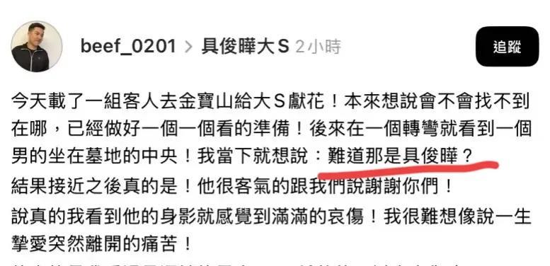 具俊晔天天去墓地陪伴大S,天哪,这个画面太震撼!看他似乎还拿了鲜花,墓碑前还有碗