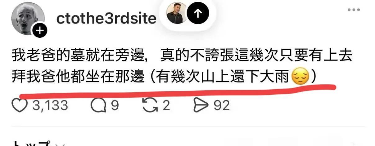 具俊晔天天去墓地陪伴大S,天哪,这个画面太震撼!看他似乎还拿了鲜花,墓碑前还有碗,他就静静的坐在哪里,这一幕真的太伤感了!他俩复合在一起的时间才三年,他俩缘分真的是浅,年轻时分过一次手,现在大S直接离去,对于具俊晔来说也是猝不及防的打击,大S走后他几乎很少露面,还以为他回韩国了,没想到他真的留下陪大S,能天天都去也算是可以了,真的是情深缘浅!#大s具俊晔#