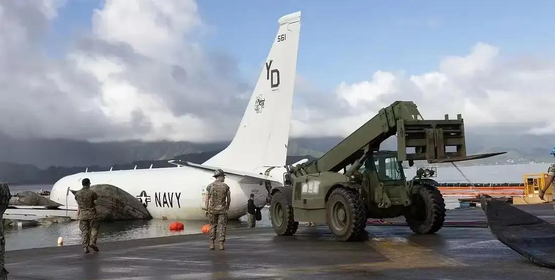 美国海军一架编号YD-561的P-8A“海神”反潜巡逻机于2023年11月20日完成例行训练任务后返回夏威夷基地,但是着陆时冲出了跑道,掉进海里了。美国海军不想放弃这架P-8A,于是就组织打捞,计划修复。 经过近两周时间,这架P-8A被拖上了岸。当时领导事故调查的美国海军少将凯文·伦诺克斯说:“我们将竭尽全力确保这架飞机能够重新正常运行。它的状态非常好,包括燃油系统在内,功能齐全。”但实际上,这架在海水里泡了近两周的P-8A没有修复价值了,因为机体机构、发动机和机载电子设备都被海水严重腐蚀了。
