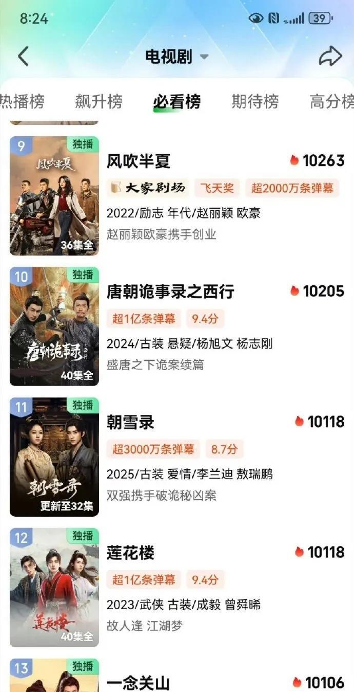 在竞争激烈的影视市场中,一部新剧想要突出重围绝非易事,可李兰迪和敖瑞鹏主演的古装探案剧《朝雪录》却做到了,而且成绩相当惊艳,热度一路高涨,甚至超过了《人世间》《一念关山》《莲花楼》这些爆款剧集 ,成为当下最热门的剧集之一。 自2025年7月开播以来,《朝雪录》便迅速吸引了观众的目光。首播首日,热度就突破了7441,展现出了强大的开局之势。此后热度一路飙升,四天后便突破9000,到了7月23日,热度值高达10054,紧接着次日更是突破10100 ,成功跻身平台爆款作品阵列,成为平台年度第三部热度破万的剧集。在热度不断攀升的同时,该剧的云合数据同样十分亮眼,首播时以9.2%的市占率稳居第四,随着剧情的深入,市占率飙升至27.9%,稳稳占据榜首之位 ,单日播放量超5500万,连续7天排名第一,可谓是实力强劲。 对比此前的热门剧集,《人世间》作为一部现实主义题材大剧,凭借其深刻的时代内涵和细腻的人物刻画,平均收视率创下了央视综合频道黄金档截至该剧播出前五年电视剧的最高收视率 ,在2022年3月1日收官当晚,爱奇艺站内热度值突破10000。《一念关山》以新颖的古装公路故事为卖点,上线首日就打破2023年爱奇艺开播首日热度值最高纪录 ,在2023年12月3日,上线6天后爱奇艺热度值破万 。《莲花楼》则凭借精彩的江湖奇案和演员的出色表演,在2023年8月9日,爱奇艺内容热度峰值突破10000 ,在第三方数据平台上,强势登顶云合、酷云、灯塔等多个数据榜单Top1 。然而,《朝雪录》却后来居上,在热度上实现了超越,实属难得。 《朝雪录》能取得如此成绩,离不开其精彩的剧情。该剧将单元探案与权谋复仇情节紧密相连,巧妙融合了传统中式恐怖美学与现代探案题材,营造出了独特的氛围感。导演李慧珠通过精湛的镜头语言,增强了剧集的沉浸感和观众的代入感,对长白山的实景拍摄,更是让自然景观与故事情节完美融合 。剧中的双强CP设定也十分吸睛,李兰迪饰演的秦莞和敖瑞鹏饰演的燕迟,两人的精彩演绎为剧集增色不少。李兰迪成功塑造了坚韧聪明的秦莞形象,敖瑞鹏则通过微妙的表情变化,展现了燕迟的多重性格,两人之间的情感纠葛和心理博弈成为观众关注的焦点 。 《朝雪录》的爆火,无疑为古装探案剧市场注入了新的活力,也让我们看到了优质内容和创新营销的力量,期待未来能有更多这样精彩的剧集出现。