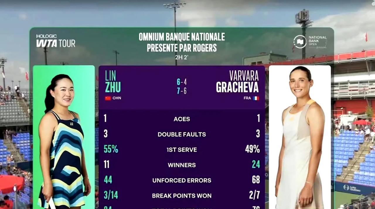 2-0!中国金花复出惊艳所有人!WTA1000蒙特利尔站喜迎开门红! 利用保护排名的朱琳在第二盘后半段体能不支情况下化解3个盘点,苦战2小时最终以6-4/7-6(3)击败资格赛选手格拉切娃。 收获35分、19705美元,排名可以上升至413位左右,距离2026澳网资格赛 :195分