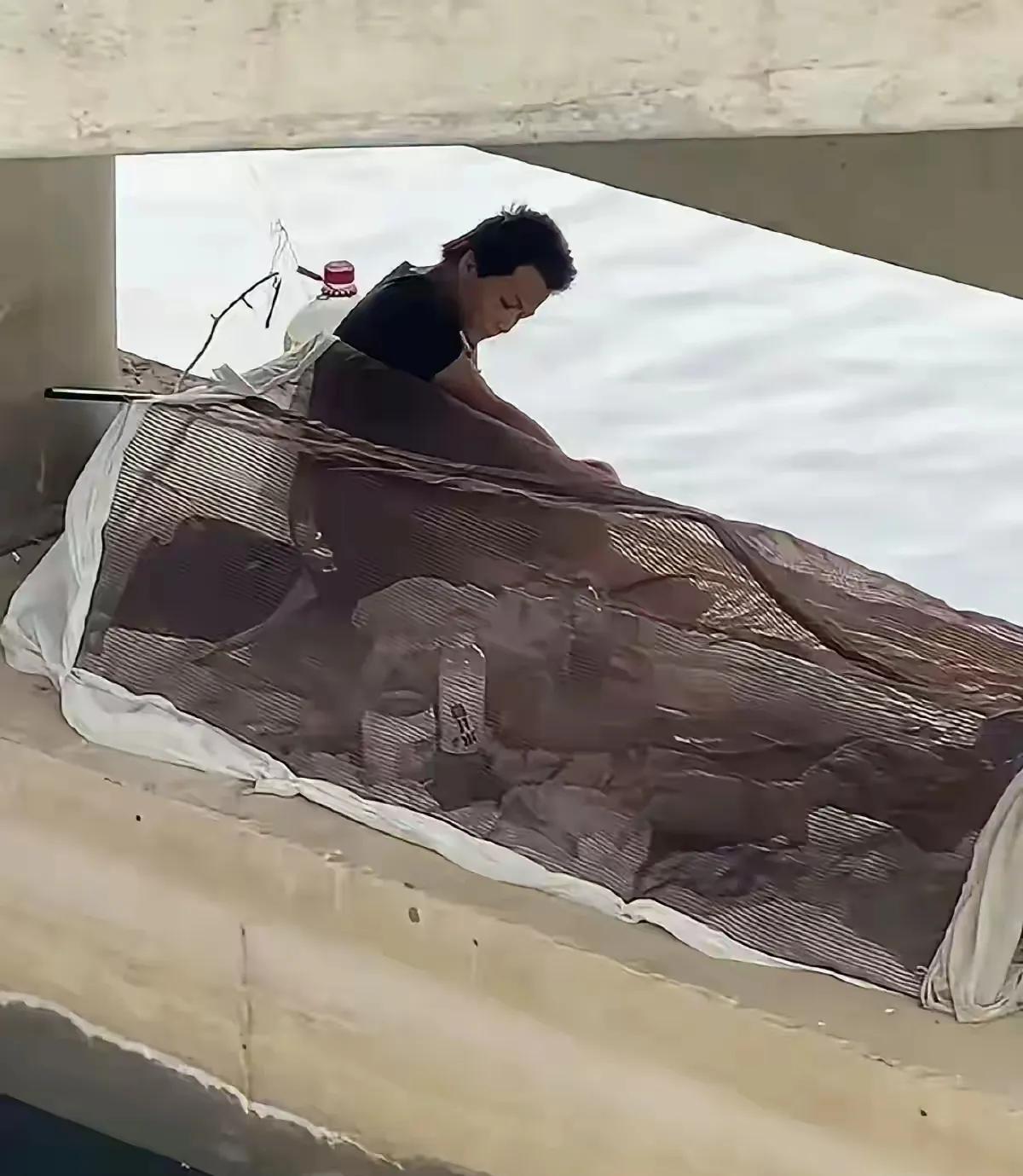 这哥们把用防蚊虫的门帘改个“帐篷”,就把桥底当成了家,吃喝拉撒全在这儿解决。说起来也没啥大难处,无非是偶尔没烟抽、饿肚子,但凡每月肯上10天班,也不至于混到这份上啊! 这哪是迫不得已,分明是自己选的懒路子,这种自甘躺平的,真没必要可怜~
