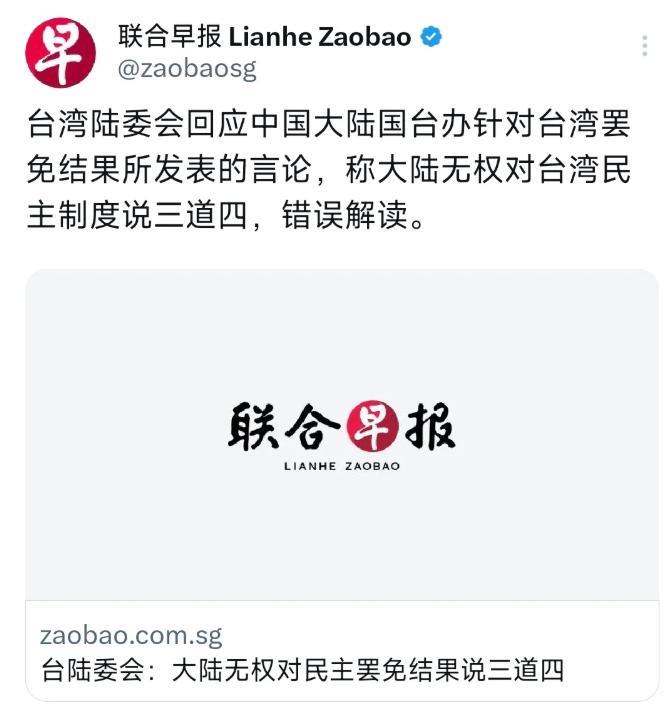 外媒7月27日晚报道:“台湾陆委会回应中国大陆国台办针对台湾罢免结果所发表的言论,称大陆无权对台湾民主制度说三道四,错误解读。” 台湾陆委会这波回应,简直是把 “掩耳盗铃” 玩明白了。7 月 26 日台湾 “大罢免” 首轮投票刚结束,国民党 24 席全部守住,民进党精心策划的政治操弄彻底翻车。 国台办发言人陈斌华 27 日直接点破真相:“假民主、真独裁” 的面目藏不住了。结果陆委会当晚跳出来喊冤,说大陆 “错误解读”“无权干涉台湾民主”,这逻辑漏洞百出的回应,连岛内网友都看不下去。 先看看这场所谓的 “民主实践” 到底有多荒唐。民进党当局为扭转 “朝小野大” 的劣势,去年就开始煽动罢免国民党籍民意代表,甚至不惜动用行政资源配合网军制造 “绿色恐怖”。投票前三个月,岛内充斥着 “不支持罢免就不是台湾人” 的极端言论,连正常讨论民生的声音都被压制。 更离谱的是,赖清德亲自下场搞 “团结十讲”,把罢免案包装成 “抗中保台” 的政治任务,结果讲一场被骂一场,最后只能灰溜溜收场。这种把民主当工具、把民意当筹码的操作,哪里是在维护制度,分明是在践踏制度。 陆委会声称大陆 “错误解读”,但事实摆在眼前。根据央视网报道,民进党为推动罢免案,不仅纵容网暴异见者,还挪用风灾救援资金搞政治动员,导致台东等地灾情延误。这种 “救灾不如造势” 的做法,连《联合报》都看不下去,直接质问:“到底是民生重要还是权力重要?” 投票结果更打脸,全台 18 个县市 “不同意罢免” 票数全面碾压,连绿营大本营高雄都出现反转。这说明台湾民众早就看穿了这场政治闹剧,用选票给民进党投了不信任票。 更讽刺的是,陆委会自己才是破坏民主的 “专业户”。这个 1991 年依据一个中国原则成立的机构,近年来却沦为 “台独” 打手。2024 年 9 月,陆委会公然否定 “九二共识”,称 1992 年两岸 “未达成任何共识”,被国台办痛批 “颠倒黑白”。 紧接着,他们又以 “统战风险” 为由,禁止岛内高校与大陆 10 所高校交流,连学生参加两岸学术会议都要层层审查。这种 “闭关锁岛” 的操作,让台媒忍不住吐槽:“陆委会现在不是在沟通,是在筑墙。” 岛内舆论对陆委会的批评更是一针见血,《中国时报》发文指出,陆委会的回应 “暴露了心虚”,明明是自己用司法手段打压异己,却反咬大陆 “干涉内政”。有网友在脸书留言:“民进党把罢免当武器,失败了就怪别人,这才是真正的‘民主霸凌’。” 连金门县议员都看不下去,痛斥陆委会 “为了政治私利,连厦金同胞的交流都要牺牲”。今年 7 月,原定举办的厦金海峡横渡活动被陆委会紧急叫停,理由竟是 “可能被统战”,让筹备了半年的两岸选手和民众空欢喜一场。 国台办的立场始终清晰:两岸交流不应成为政治操弄的牺牲品。陈斌华在回应中强调,民进党当局 “罔顾民生、制造对立” 的做法不得人心。 事实上,从限制陆配探亲到阻挠陆生赴台,从打压台商到封杀媒体,陆委会的每一次出手,都是在消耗台湾民众的利益。正如马英九基金会执行长萧旭岑所说:“民进党越搞对抗,台湾就越没有未来。” 这场 “大罢免” 的惨败,本质上是民意对政治恶斗的一次清算。陆委会与其忙着 “甩锅”,不如好好反思:为什么台湾民众用选票否决了这场闹剧?为什么越来越多人看清 “抗中保台” 不过是 “抗中保权”? 历史已经证明,任何逆潮流而动的 “台独” 行径,最终都将被民意的浪潮吞没。陆委会若继续执迷不悟,只会让自己沦为两岸关系的 “绊脚石”,被钉在历史的耻辱柱上。