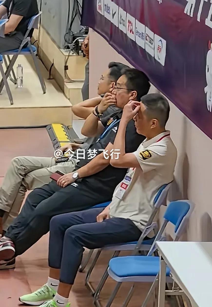 广东宏远老板陈海涛现场观赛,与俱乐部总经理朱芳雨谈话! 昨晚,FIBA国际团结杯