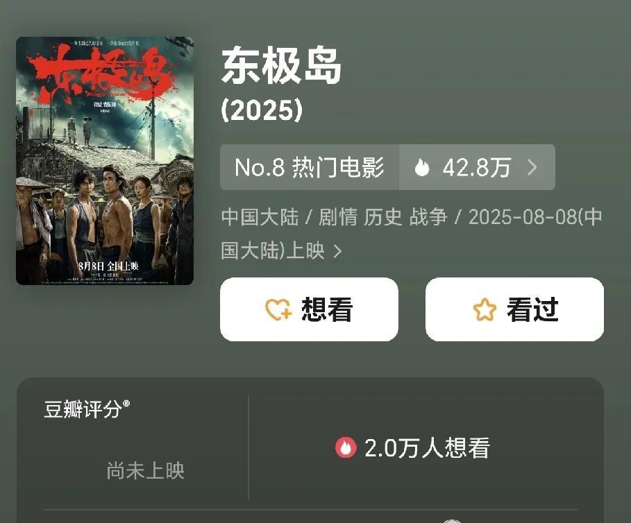 感觉《东极岛》真的危险了!! 曾经以为这个暑假档会是《731》独领风骚,但没想到