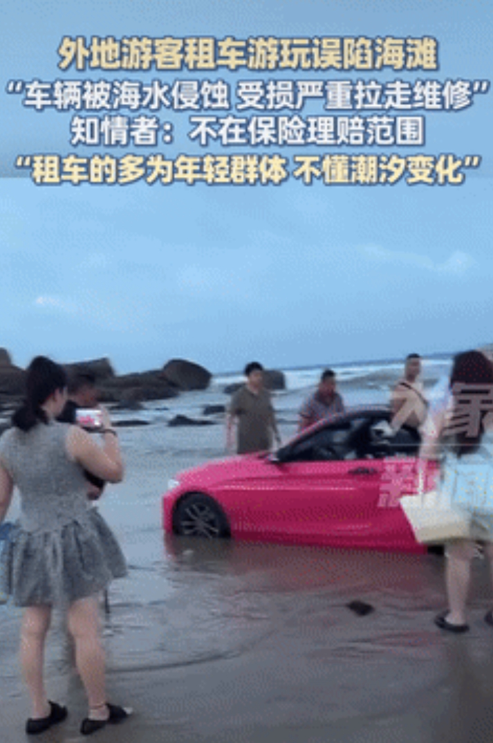 心不是一般的大!福建福州,一外地游客租跑车去海边玩,结果陷进沙滩里出不来,车辆被海水侵蚀,受损严重被拉走维修,有知情人透露,不在保险理赔范围内!网友:这下租车行老板笑开花了! 据大象新闻7月27日的报道,事情发生在福州的一处开放海滩,有外地的游客来这边游玩时,租了一辆跑车。 随后该游客可能是想近距离看看海景,于是就把车直接开上了沙滩,结果因不熟悉潮汐的变化,直接就陷进沙滩里出不来了。 当时也有些热心的群众过来帮忙,试着将车从沙子里推出来,可惜没能成功,此时海水也开始慢慢涨潮。 没过多长时间,车辆的整个底盘都已经被海水给淹没,直到后面才被弄出来,接着就被拖车拉走检修区了。 事后检查发现,这辆车受损相当严重,底盘被海水侵蚀的很严重,发动机舱里还有很多的泥沙。 最麻烦的是,这种情况并不在保险理赔的范围内,也就意味着所有的维修费,是要游客自己承担的, 虽然不知道那辆车的具体型号,但既然是跑车,价格肯定会贵些,如今出了这种事,修车为少说都要好几万,甚至是更多。 现在很多年轻人租车自驾游,觉得方便又自由,但他们往往忽略了风险,特别是对陌生环境的潜在危险缺乏认识。 例如海边、山路这些特殊地形,都有自己的规律,不熟悉的人很容易出事,就像这次,游客可能觉得沙滩和普通路面没什么区别,结果付出了惨痛代价。 所以说,不管是处于什么样的心理,想开车到海边玩,可以提前查好潮汐时间表,这个在网上都能查到,免得出现意外状况。 实在不行,就别把车开到沙滩上,很多海滩都明确禁止车辆进入,保险公司不是慈善机构,合同里没写的他们肯定不会赔。 大家出去玩图的是开心,但安全这根弦什么时候都不能松,自然不会因为你是游客就网开一面,该涨潮的时候一分钟都不会晚。 信息来源:大象新闻 《外地游客租车游玩误陷海滩,知情者车辆被海水侵蚀拉走维修,不在保险理赔范围》2025-7-27