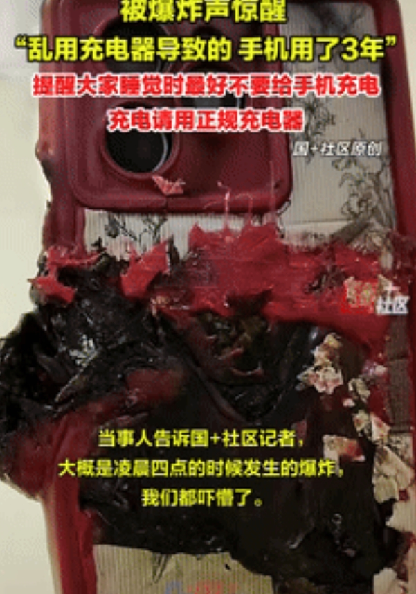 “贪便宜的后果!”江苏宿迁,一女子凌晨睡觉时,突然听到一声巨响,醒来后发现充电的手机爆炸起火,手机使用了3年没出现过意外,因为她睡前一个随手的举动,导致这场悲剧发生,网友:这手机还能要吗? 据国+社区7月27日消息,女子看到手机发生自燃后,直接被吓懵了,反应过来后赶紧把火扑灭,手机壳已经被烧化,放手机的地方也被烧黑,她之前也有过睡觉时充电,但没出过事。 女子很是不解,平常都好好的,怎么唯独这次着火,她看着烧毁的充电器,心里顿时有了猜测,之前用的都是原装,但她因为着急睡觉,就随便扯了个充电器给手机充。 结果就自燃了,火势蔓延的速度很快,即便她用最快的速度把火势控制住,但手机大概率是报废了,维修费可能都够她买个新的了。 危险就是一瞬间的事,网上宣传过多次,充电要用原装的,真不是商家赚钱的噱头,相应的充电器会识别设备支持的功率,不会强制输出高功率。 劣质的充电器要价低廉,商家还要赚钱,能用多好的材料?只要存在电路问题,不管给什么手机充电,都有可能发生意外。 而且充电最好不要整夜充,有那么多案例,但总有人不当回事,其实就是概率问题,真出事了,后悔都来不及,所以能控制就控制,避免类似情况发生。 对于这件事情,大家有什么看法? 信息来源:国+社区 2025年7月27日