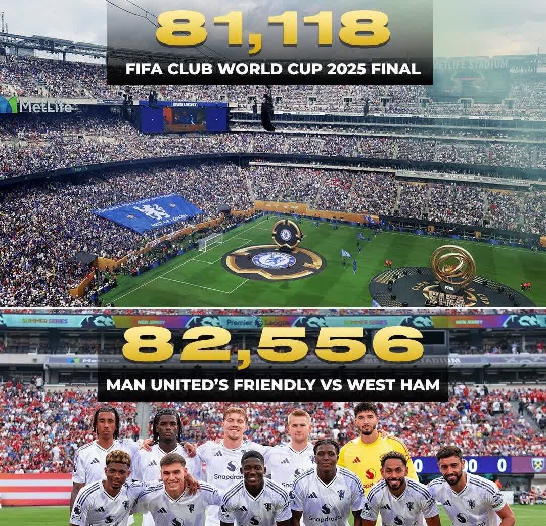这是什么场景?说出来你会不相信.这里是美国🇺🇸,是曼联对阵西汉姆联的友谊赛的球场!吸引了 82,566 名球迷,成为今年美国足球赛事中观赛人数最多的一场比赛。 🗣️这比世俱杯决赛 81,118 名观众的观赛人数还要多 😳👀💪💪💪