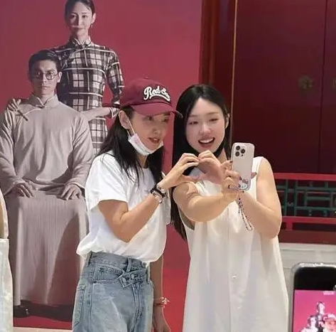 李冰冰管乐手挽手看舞剧,贴脸比心自拍感情超好。