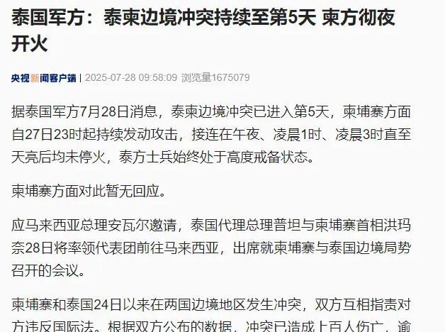 这个柬埔寨和泰国究竟谁的军事实力强啊?看最近柬埔寨这个动作,我都觉得柬埔寨可能也不是很弱吧?或者说,虽然不强大,但是表现很强势? 看吧,新闻上报道的,从昨天晚上11点钟到今天凌晨3点多钟,柬埔寨连续向泰国发动攻击,也许柬埔寨的军人真的斗志更强,更能吃苦,虽然他们的武器后勤这些条件差一些! 如果情况真的是这样的话,泰国肯定是不甘示弱,就会继续打下去,甚至有传言说泰国就准备抓住这个机会攻占两国边境处很多有争议的地方,毕竟前两天泰国也说了,要停战可以,但是柬埔寨必须拿出自己的诚意来!