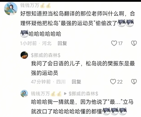 松岛辉空赛后采访说:樊振东违规了,还好翻译机智,给他改了。