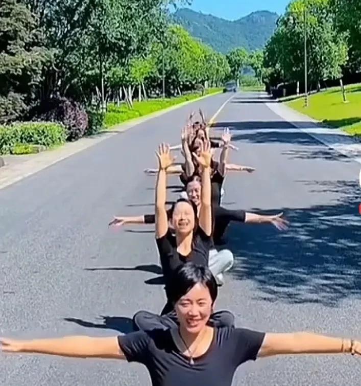 这些都是谁家的大宝贝,抓紧时间赶紧领回家吧,这是马路不是瑜伽馆。 我就想知道这样在马路上摆造型,要是被车撞了,这责任怎么划分,是她们的责任大还是车主认倒霉。 有时候这也是个奇怪的现象,往往一个奇葩的能带偏一帮人跟着做出一些奇葩的事。 像这种明显违反交通法规的视频是怎么发出来的,如果把关能严一些,她们没有可嘚瑟的地方,我想这样的事以后也会少很多。 网络应该多展示正能量的东西,像这样的视频就不应该给她展示的机会,放任她们给她们机会,她们就还会有下次,甚至做出比这更危险的事。