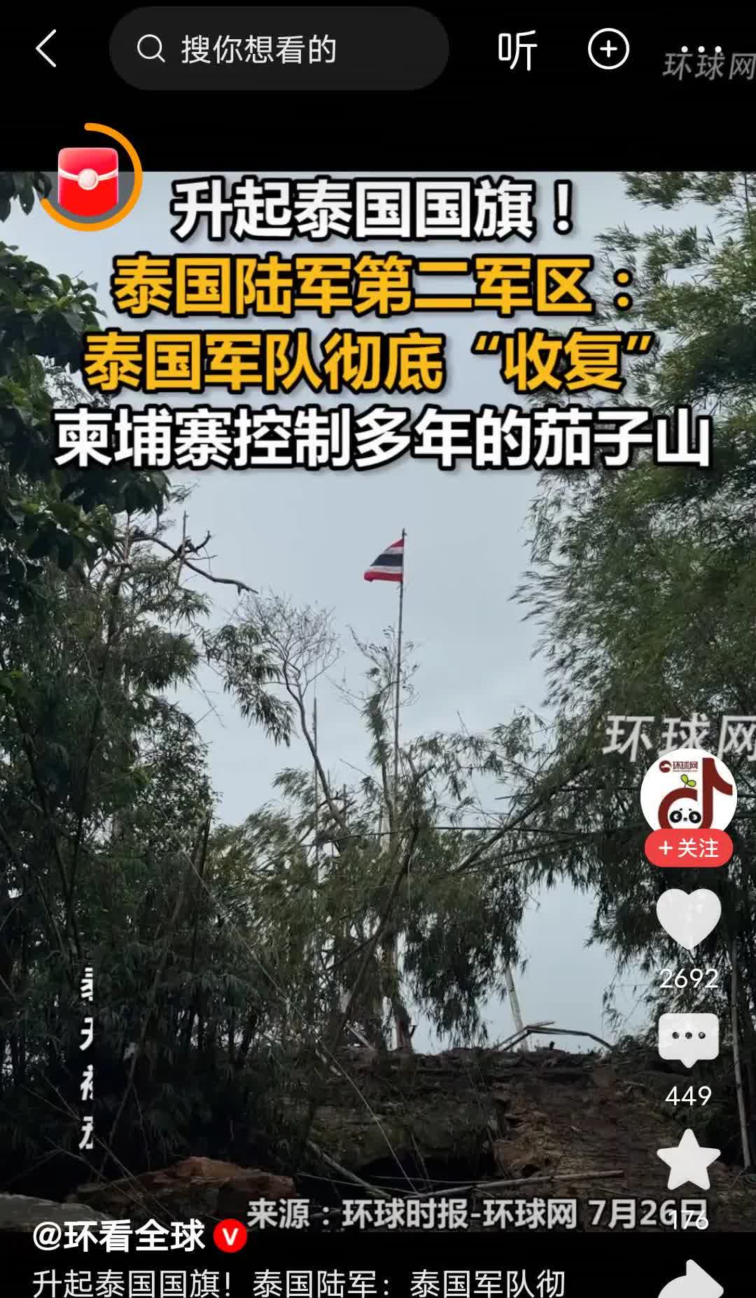 唉,可惜泰国没有以色列人那样的雄心壮志, 泰国陆军第二军区9:20宣布,茄子山升起泰国国旗。泰国军队彻底“收复”被柬埔寨控制多年的茄子山,茄子山为泰柬边境的战略要点 要是有以色列那样雄心壮志进取心极强的的国家肯定会高歌猛进,继续进攻柬埔寨,占领更多柬埔寨的领土。 会彻底打痛柬埔寨实际领导人洪森这个不自量力的人。 柬埔寨应该庆幸他邻国的泰国的有关领导层没有以色列那样雄心壮志的人,否则柬埔寨在曝光录音之后就会被泰国痛打一番