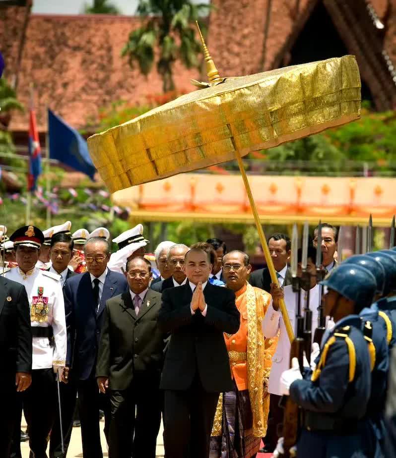 柬埔寨是君主立宪制,现任国王诺罗敦·西哈莫尼,是前国王诺罗敦·西哈努克和前王后诺罗敦·莫尼列的长子,出生于1953年。 他青少年时期在捷克斯洛伐克留学,喜欢芭蕾舞,回国度假期间他会参加文化艺术活动,包括主演他父亲制作的电影和表演芭蕾舞。 1971年至1975年间,西哈莫尼在布拉格表演艺术学院完成了古典舞蹈和音乐方面的高等教育,获得硕士学位。 其父西哈努克亲王流亡中国时期,西哈莫尼随后担任父亲的秘书。1981年,西哈莫尼移居法国,担任古典舞蹈和艺术教育学教授,在多个音乐学院担任芭蕾舞教授近二十年。 他旅居法国近20年,坚持对艺术的追求,包括创办原创舞蹈团“Ballet Deva”,担任总经理兼艺术总监,同时领导舞蹈团。 1993 年,西哈莫尼被任命为柬埔寨常驻巴黎联合国教科文组织代表,他一直担任这一职务,直到 2004 年成为国王。 2004 年 10 月 14 日,其父退位一周后,他被皇家王座委员会选为下一任君主。皇家王座委员会是柬埔寨的一个九人委员会,负责选举柬埔寨君主。它于 1993 年 9 月 24 日根据宪法成立。理事会从柬埔寨王室年满 30 岁的国王男性后裔中选举国王。 国王的政治权力有限,西哈莫尼很少介入柬埔寨政治。他一直专注于人民的福祉,以开展人道主义活动而闻名。他多次对柬埔寨政府捐款,用于慈善事业。 西哈莫尼是佛教徒,他一直没有结婚,没有子女。 2023年7月26日,柬埔寨大选中首相洪森的人民党获胜,此后几天,洪森宣布打算辞职,转而让位给他的儿子洪马内。洪森在皇宫会见了西哈莫尼,报道称西哈莫尼同意他的决定以及即将启动的过渡安排。 洪马内将被国王正式任命为第二任首相,将于 2023 年 8 月与新内阁和议会成员一起上台。