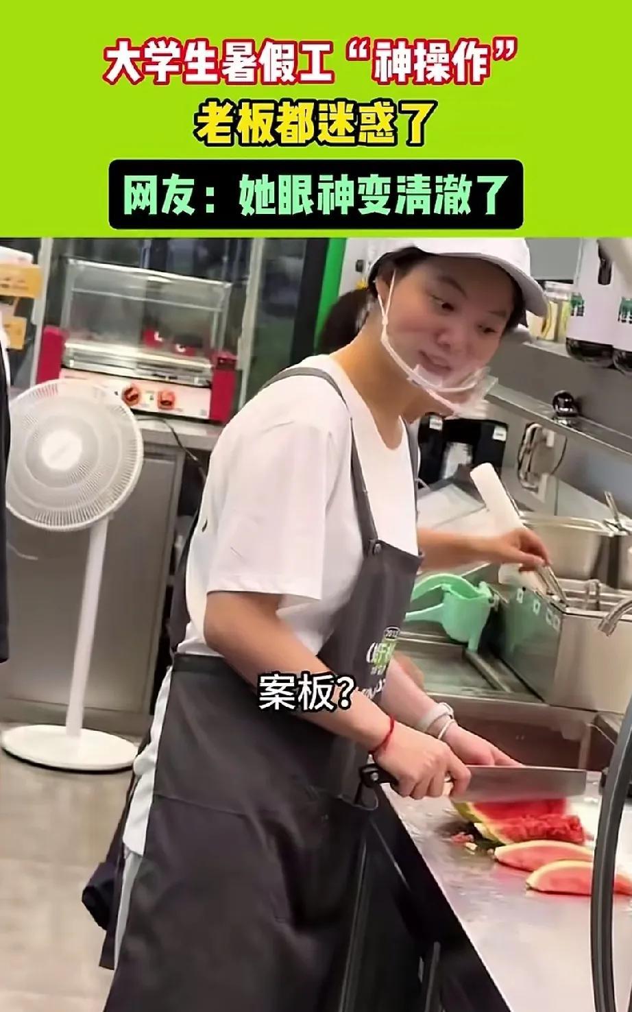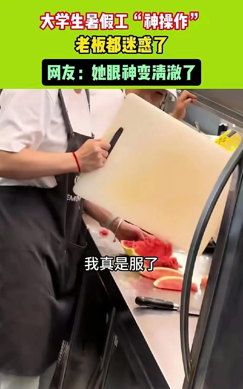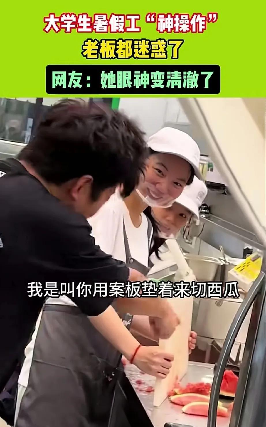 “我是让你用案板来切西瓜,不是让你用案板去切西瓜。我热了个温啊,你是哪个大学教出来的?”看到小妹切西瓜时的奇葩操作,老板一下子就抓狂了。 这不是段子,这是发生在一个小店里的真实事件。近日,有个女大学生来打暑假工,居然在灶台上直接拿起刀就切起西瓜,该店老板看到后赶忙大喊“用案板切”。 这个女大学生听到后,急忙从灶台墙壁上取下案板,可让人意想不到的是,她却把刀放下了,直接用案板朝着西瓜切下去,老板顿时气得大叫:“我是让你用案板来切西瓜,不是让你用案板去切西瓜……” 面对这样的神操作,老板瞬间崩溃,还爆了粗口,怪不得现在的大学生找工作那么难呢,连这么一个简单的切西瓜的指令都听不懂,真的是让人忧心忡忡啊。 真的没有想到,平常只注重书本知识,五谷不分、四体不勤,两耳不闻窗外事,一心只读圣贤书的书呆子真的有啊。这样培养教育出来的学生,哪怕考再高的分也是高分低能。 看来我们的教育确实出问题了,还需要多多改进,希望今后的教育既能让学生学会书本知识,又能学会劳动才是正途。