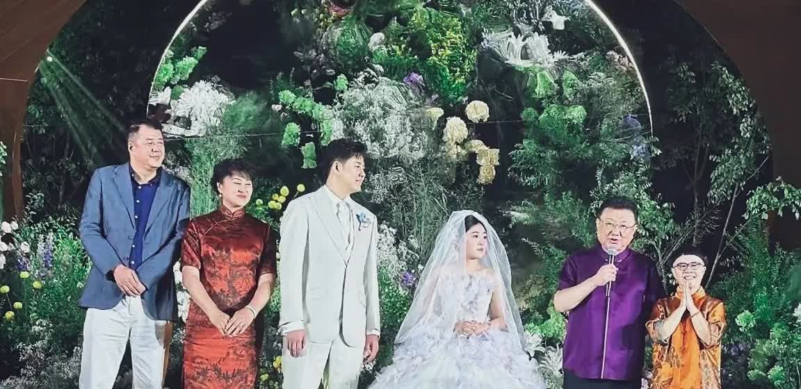 金龟子给女儿女婿补办婚礼,场面那叫一个温馨!亲家一家都是高颜值,高个子,穿搭喜庆