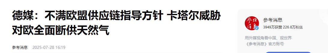 卡塔尔决定断掉对欧盟的液化天然气供应,这是欧盟自己作死的结果: 放着稳定的能源合作不谈,非要用一套严苛到不切实际的气候标准给生意设卡,光要求开采、运输、使用全链条的碳排放数据精确到小数点后几位,还放出话来,只要有一项不达标,就得面临天价罚款,甚至要承担民事责任。 这哪是做生意,分明是给卡塔尔递了份"要么赔钱要么走人"的选择题!卡塔尔能乐意吗?人家手里握着全球第三大天然气储量,光已探明的就有25万亿立方米,每年产量稳居世界第六,论底气根本不愁没买家。 既然欧盟这边规矩多、风险大,转头把液化天然气卖到那些商业环境更稳定、要求更务实的市场,比如亚洲的印度、东南亚国家,赚得说不定还更多,何必在欧盟这棵歪脖子树上吊死? 欧盟这步棋走得有多蠢,看看它之前的能源操作就知道了。前两年跟风对俄罗斯天然气搞制裁,硬生生把自己从"能源稳定区"作进了"供应焦虑圈"。当时为了填窟窿,又是高价从美国买液化天然气,又是拉着卡塔尔签长约,好不容易才把天然气缺口堵上大半。 结果好了,美国最近自己国内能源需求涨了,加上亚洲市场给的报价更高,转头就减少了对欧洲的出口量;俄罗斯那边呢,被欧盟的制裁捆着手脚,想卖也卖不顺畅。现在卡塔尔再一撤,等于欧盟能源供应的三条腿一下子断了两条半,剩下的那点储备,撑不了多久。 这断供的影响可不是说说而已。首先扛不住的就是欧盟的天然气价格,本来因为供应紧张就没怎么降过,这下子供需缺口一拉大,怕是又要跟坐火箭似的往上冲。 老百姓家里的取暖费、做饭的燃气费肯定得涨,之前有人算过,一个普通德国家庭,一年的能源支出可能要多掏上千欧元。企业更惨,那些靠天然气运转的化工厂、钢铁厂,生产成本噌噌往上涨,要么就得裁员降薪,要么就得把成本加到产品里。 可欧盟的产品本来就因为人工、环保成本高,在国际市场上没什么价格优势,这么一折腾,怕是连老客户都要被东南亚、中国的企业抢走。连锁反应下来,企业盈利降了,税收就少了,政府想搞点福利、刺激经济都没底气,整个欧盟经济估计得往更差的坑里滑。 有人说欧盟搞气候标准是为了环保,这是没错,但环保也得看时机和实力。现在全球能源市场还没从俄乌冲突的震荡里缓过来,欧盟自己又没建立起足够的可再生能源替代体系,风电、光伏的发电量连自家需求的三成还顶不上。 这时候跟主要能源供应方提苛刻条件,纯属本末倒置。卡塔尔的选择其实很现实,做生意讲究互利共赢,谁也不想天天提着心眼看欧盟的"标准尺子",与其等着哪天被罚得血本无归,不如趁早找个更靠谱的合作伙伴。 说到底,欧盟这事儿就是典型的理想主义盖过了现实需求。放着能稳住民生和经济的能源合作不珍惜,非要用不切实际的标准秀环保姿态,结果把自己架在了火上烤。