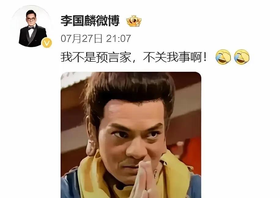 近期少林寺方丈各种传闻闹得沸沸扬扬,没想到竟然让《天龙八部》中鸠摩智的饰演者演者李国麟老师火了一把。 原来这部在30年前火爆一时的电视剧《天龙八部》中,鸠摩智有一句台词,“少林寺,原来是一个暗藏春色,藏污纳垢之所”,这句话原本只是影视剧中的一句普通台词,只是因为与当前少林寺方丈事件有着一语成谶的味道,一时间引起广大网友玩梗潮。 这也让李国麟老师不得不赶紧出来辟谣,我不是预言家,不关我事。 不过广大网友纷纷表示支持李国麟老师,认为李国麟老师适合去做个政协监督员代表!你怎么看呢?