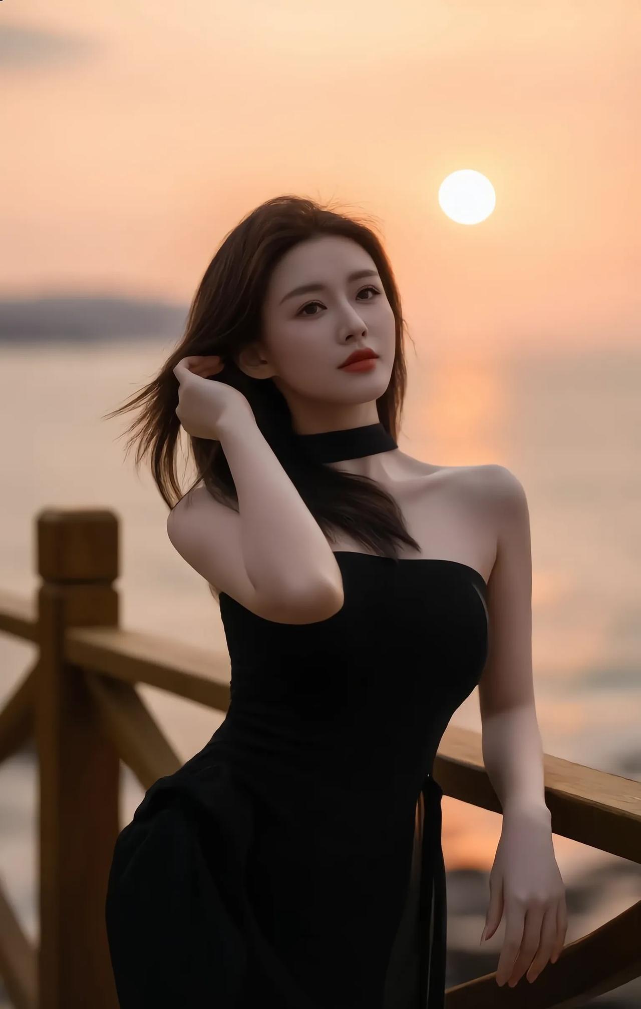 #气质黑长裙##黑裙美女##海滨白裙女神##街头黑裙美女#