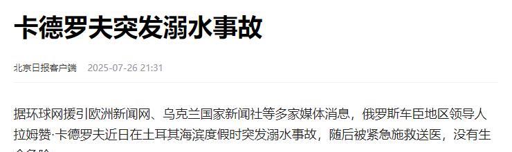 卡德罗夫溺水险些丢掉性命,俄媒突然想起,几个月前他与普京爆发的重大分歧! 根据消
