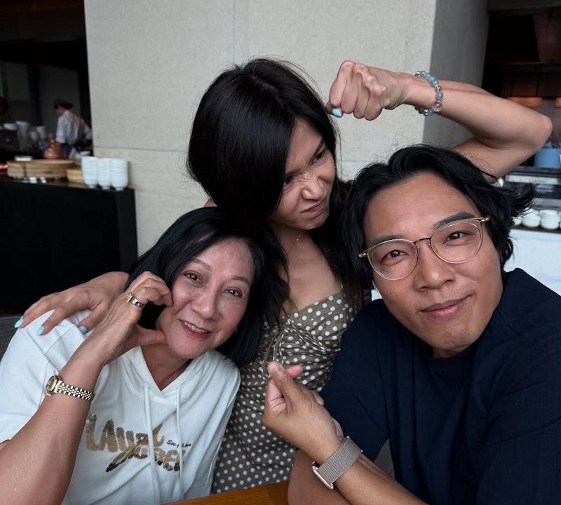TVB处境喜剧《爱.回家之开心速递》,一班演员的角色,均是深入民心,虽然有艺人离巢,要告别剧组,但仍无阻他们的友情,剧中饰演「二龙太」的苏恩磁近日跟已离巢的儿子「细龙生」郑世豪和新抱「细龙太」 陈思圻叙旧,一家三口,乐也融融。 近日陈思圻跟郑世豪及苏恩磁叙旧,一行三人去了吃日式烧肉,又一起逛街买公仔,感情非常之好,未有因为郑世豪及陈思圻离巢而生疏。有心水清网民发现,他们分享了不少合照,而且每去一处地方,例必放大店子的招牌拍照,无疑衍生出不少商机。像同剧的林淑敏和许家杰就以「夫妻档」搵食,而郑世豪照样可以用细龙生夫妻档或母子档出骚,相信不少观众都认识他们一家三口,钱途无限。