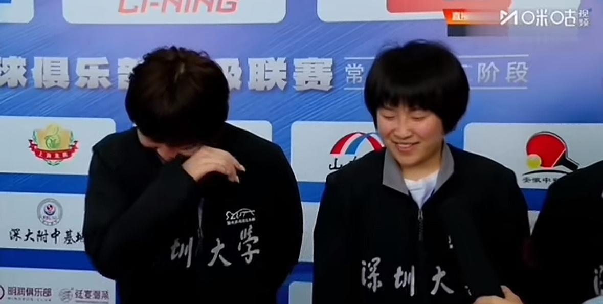 哈哈哈哈,要被蒯曼和覃予萱笑死了,谁家运动员接受直播采访笑场,而且还笑的前俯后仰?那必须是深圳大学队。从覃予萱回答记者提问开始,蒯曼就有点绷不住了,看得出来蒯曼一直咬着嘴唇很努力的在忍着不笑(图1图2),等蒯曼把这20年的伤心事全想了一遍后,终于绷不住笑出了声(图3图4),蒯曼这一笑覃予萱哪还憋的住,俩人笑的前俯后仰都站不住了(图567),给记者都整的笑场了,最后还是蒯曼反应过来这是直播,赶紧指着镜头对覃予萱说直播呢直播呢(图8),俩人才收拾好笑容调整好状态重新站在镜头前(图9)咱就是说俩人这操作直接把外协平野美宇给整不会了,一脸迷茫。咱就是说国梁刚走你俩就这么肆无忌惮了?那句“嘻嘻哈哈等于自杀”突然回荡在耳畔。快乐乒超的含金量还在上升。#晒图笔记大赛# #蒯曼# #覃予萱#