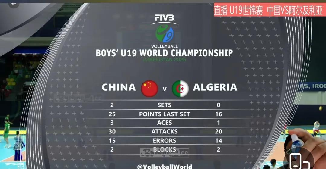 祝贺中国男排U19三比零战胜对手,取得第三胜! 刚刚结束的世界男排U19联赛,中国男排U19三比零战胜阿尔及利亚男排,本场比赛看点颇多,各个位置全面开花,小二传妙手调配,主攻副攻接应自由人都有亮点,主力和替补场上都能够稳定输出精彩发挥,侯春俤教练更是锻炼全员。 整个比赛中国男排打出了信心和血性,打出了自己的威风和精彩,再次祝贺中国男排三比零完胜对手。 明天继续看比赛,为中国男排小将们加油助威[点亮平安灯][点亮平安灯][点亮平安灯][加油][加油][加油] #中国u19队# #中国男排#