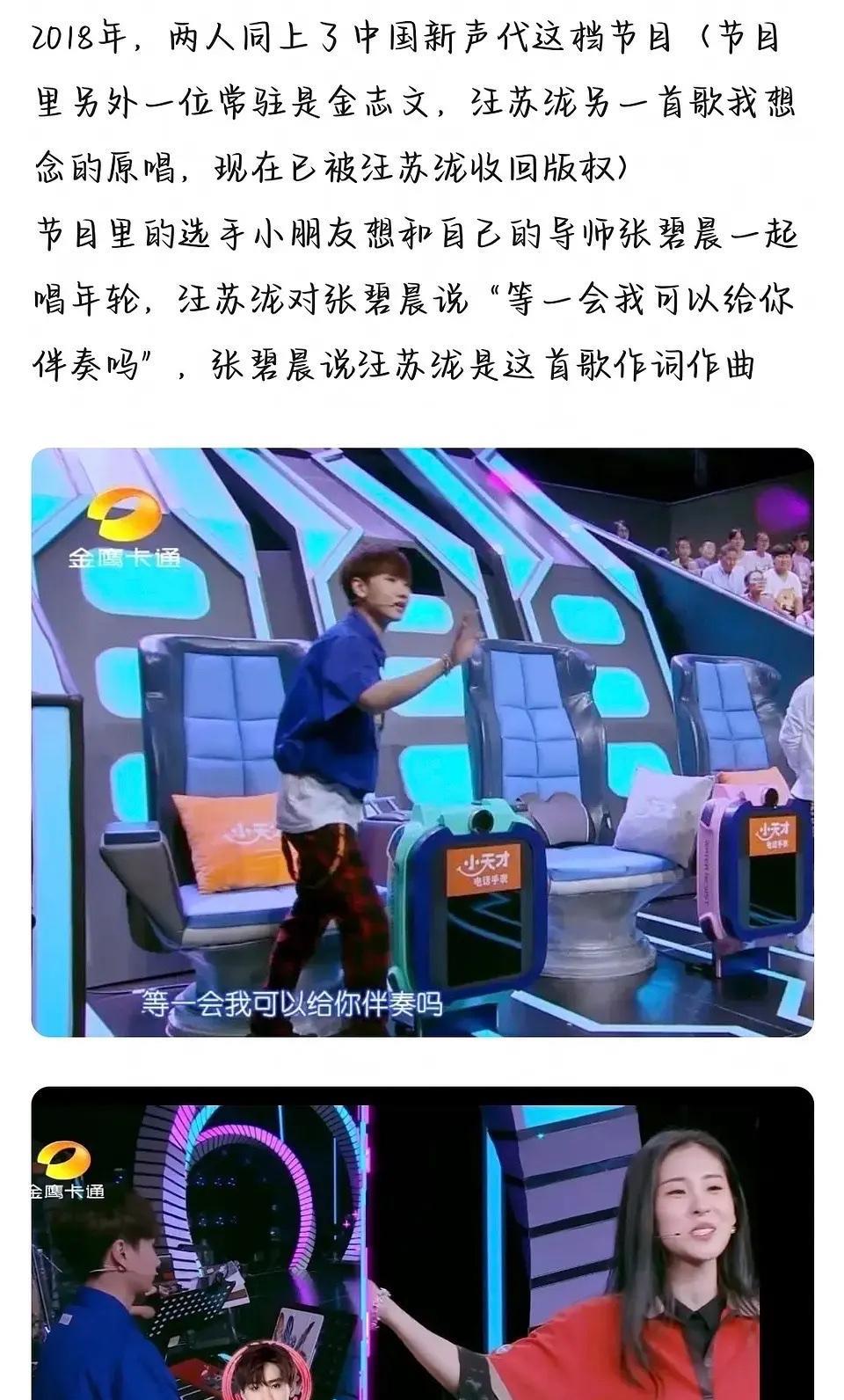 对比之下,显得汪苏泷有点小气啊。 张碧晨每次唱《年轮》时都是一种十分感激的态度,镜头前多次感谢汪苏泷为她写了这么好听的歌,无论是在综艺节目、还是音乐节演唱会上,都是如此。 但是汪苏泷却在节目上说:“其实年轮这首歌词曲是我、原唱是我,就这么说吧,除了张碧晨,这首歌都是我的,是不是这么一说,觉得张碧晨那版也没那么好听了,其实我唱得还可以。” 但说实话,要不是张碧晨唱了,这首歌也火不了,看了上季《歌手》的都知道汪苏泷唱歌什么水平,音乐平台上汪苏泷那版的收藏量甚至不如旺仔小乔的多。 为了争原唱撕破脸还真挺不划算的,就躺在幕后收收版权费不香吗?可能现在汪苏泷不缺钱了,就想争个名头吧。