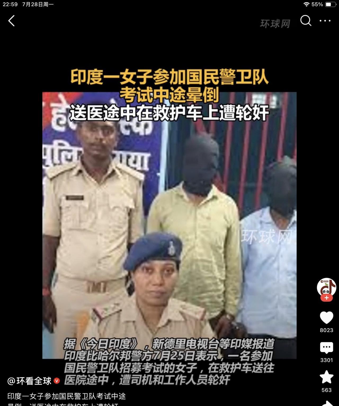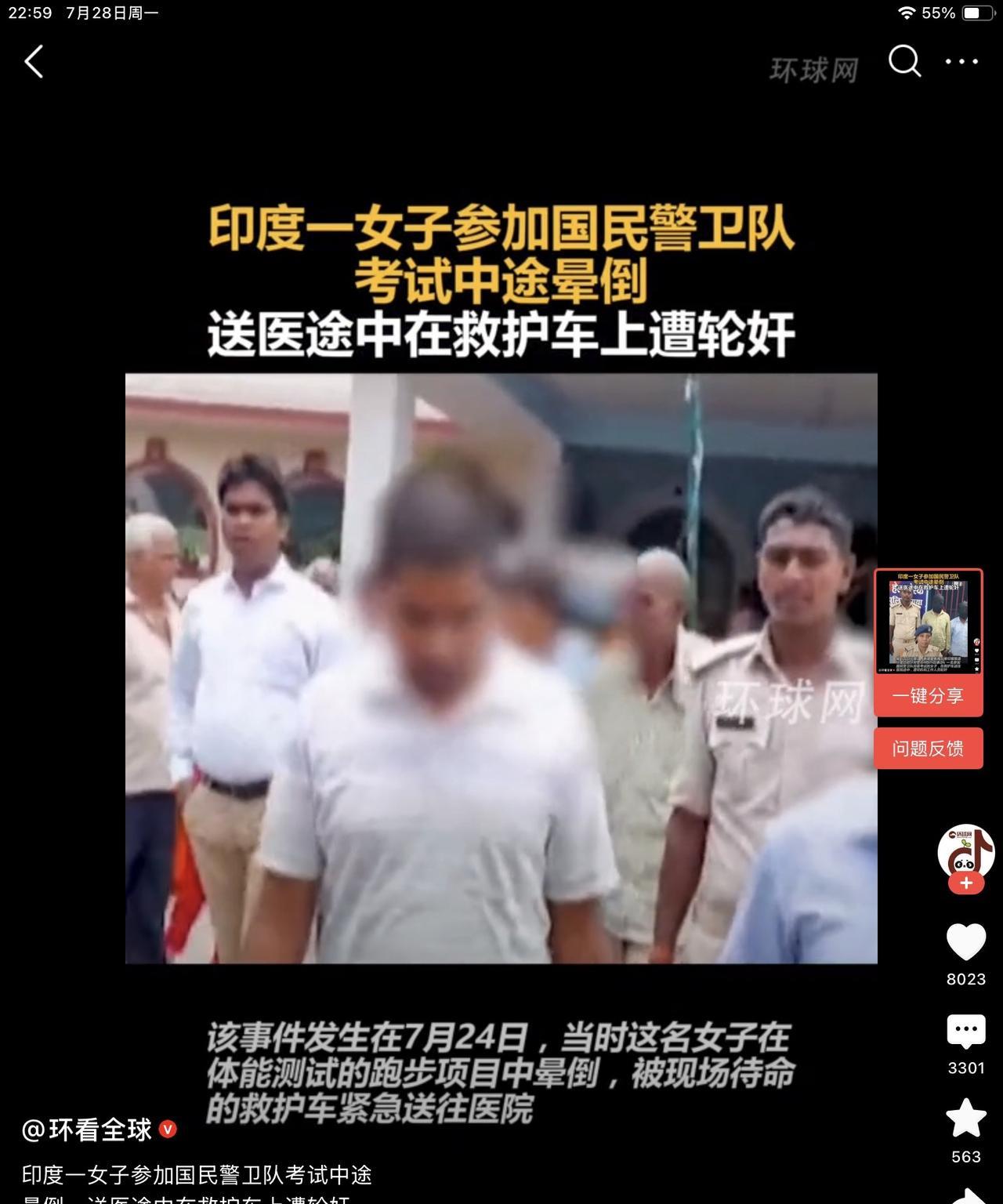 印度真的是一个神奇又奇葩的国家,这样的国家居然还要申奥! 7月27日,一名女子在救护车上遭到轮奸。 据悉,这名女子是在参加国民警卫队招聘活动的体能测试时晕倒,在被送往医院的救护车上遭到轮奸! 这件事真的太奇葩了!