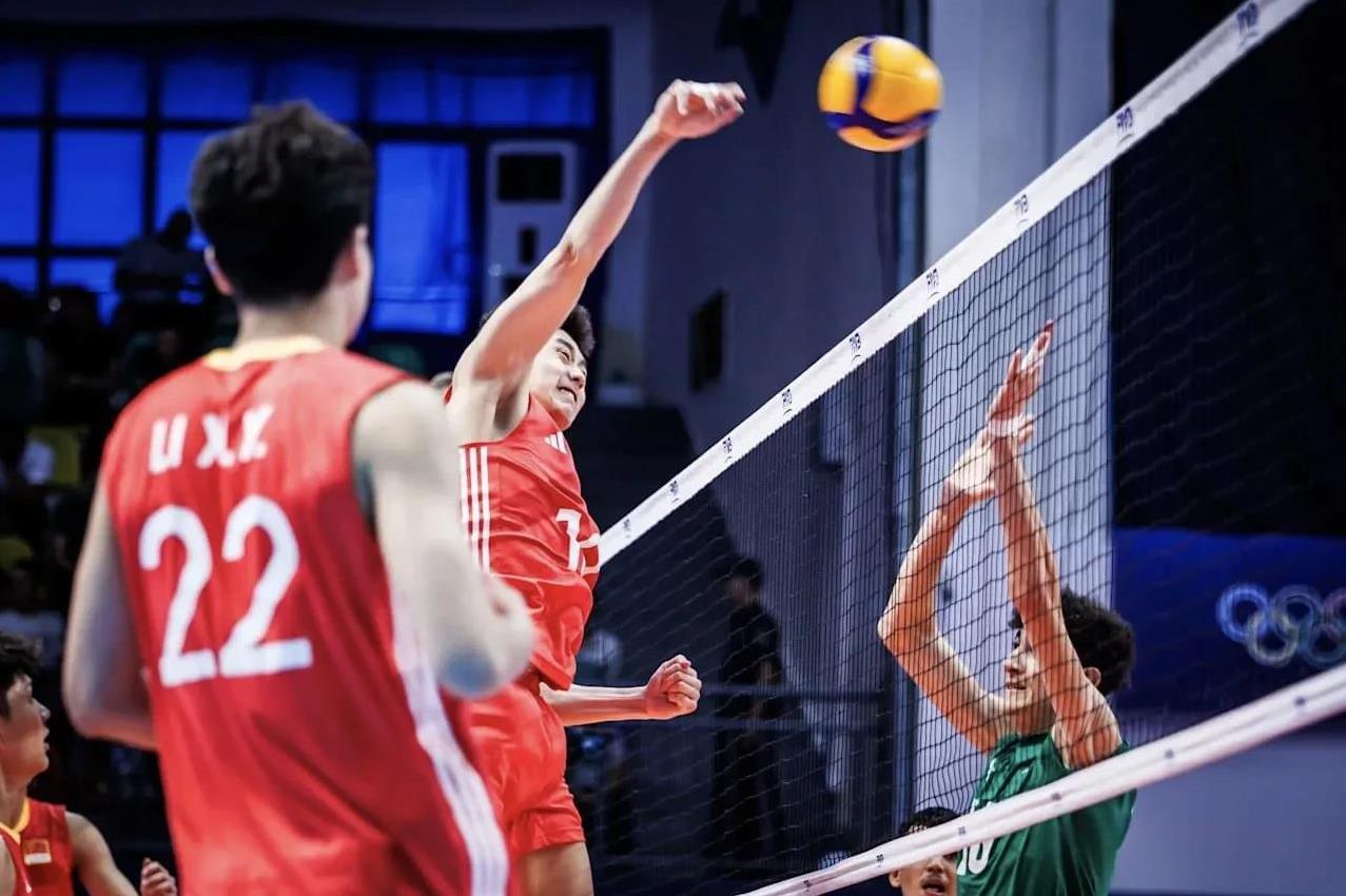 U19男排世锦赛小组赛第四轮,之前两胜一负的中国队以25-21、25-16、25