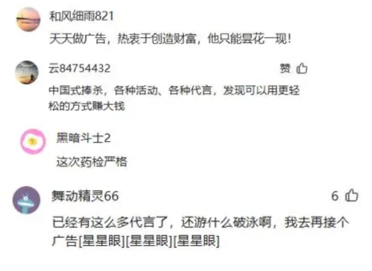 潘展乐难道只能胜不能败?就像当年的刘翔,只要一次失败,各种负面评论就像疯狗一样撕咬过来。 潘展乐200失利,无缘半决赛。 本来运动员胜败乃常事,谁都有状态不好的时候。但在中国,你要一直胜利,就会被捧上神坛。一旦失败,当初捧你的人就会狠狠地在踩你几脚。 200米不是潘展乐的强项。一次失败也不能彻底否定一个运动员。但大家看看评论。有说潘展乐忙着代言挣钱的,有说参加活动太多了,甚至还有人造谣“这次药检严格了”,言外之意潘展乐原来的成绩都是因为服药而来的。像这种不负责任的评论网友随口而出,根本不考虑自己的话会对他人造成什么影响。 就这样的网友,运动员的成绩好跟他们毫无关系,成绩差跟他们也毫无关系。自己一点也没有付出过,有什么资格在网上大放厥词。多操心自己的生活吧!