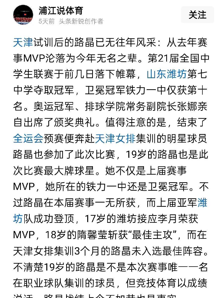 王艺竹 和姚迪 被王宝泉安排留学 据说是为路晶让路 不过路晶晶光似乎不在状态 根据女排大咖浦江的描述 最近的中学生联赛铁力一中都不行了, 只是第十名, 路晶更是没有进入最佳阵容 看来双方都错了 这是路晶到天津女排试训之后不适应? 不过王宝泉的心思大家也都看到了, 他是确实不喜欢姚迪和王艺竹 现在陈博雅有陈方罩着他不好欺负 现在居然欺负到了姚迪王艺竹的头上 这也就解释了上一届联赛姚迪被排挤的事实, 当时姚迪开始没有参赛就炮制了各种的理由, 最后五连败无奈才把姚迪请出来, 王艺竹更是难受,被王宝泉把主攻位置调到接应打了半天, 王宝泉培养人没有经验,挤兑人倒是有一手 如果这么搞下去 说不定这俩人跑到江西去找陈友泉也有科能#女排领队# #女排教练# #王艺迪失利# #王艺迪c位# #天津女排陈馨彤# #天津女排青训# #女排江湖行# #天津女排# #中国女排# #中国女排#